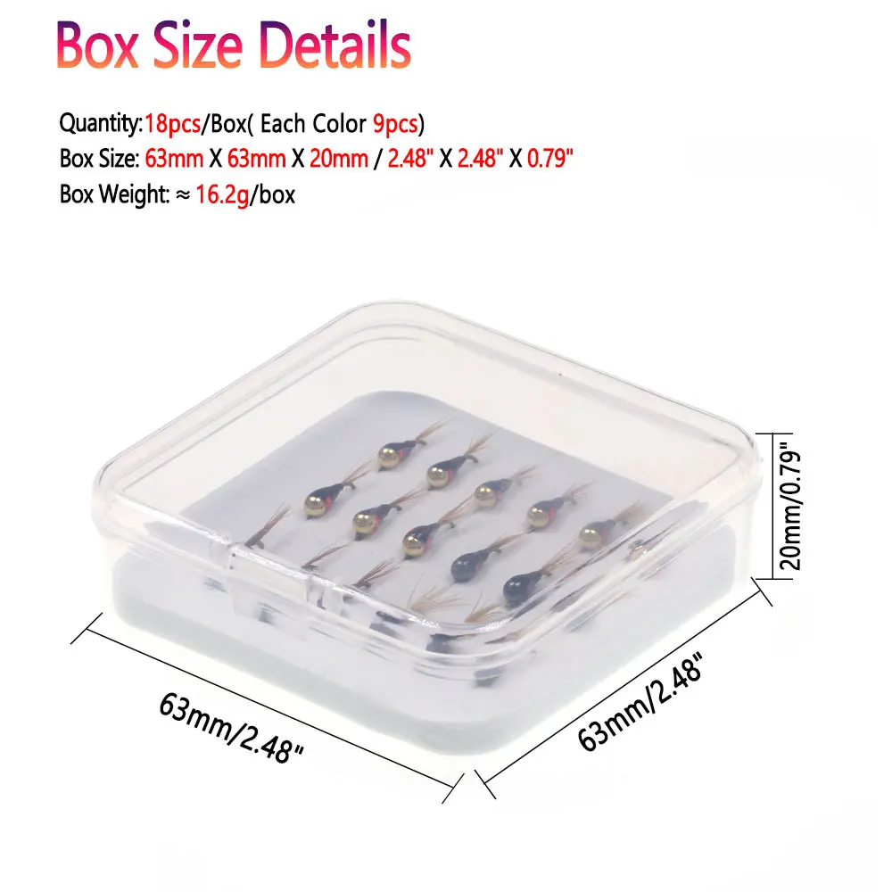 Bimoo 18 unids/caja #16 cabeza de cuentas de tungsteno plantilla Ninfa mosca faisán cola hundimiento rápido púas húmedo Euro Ninfa mosca trucha Señuelos de Pesca cebos