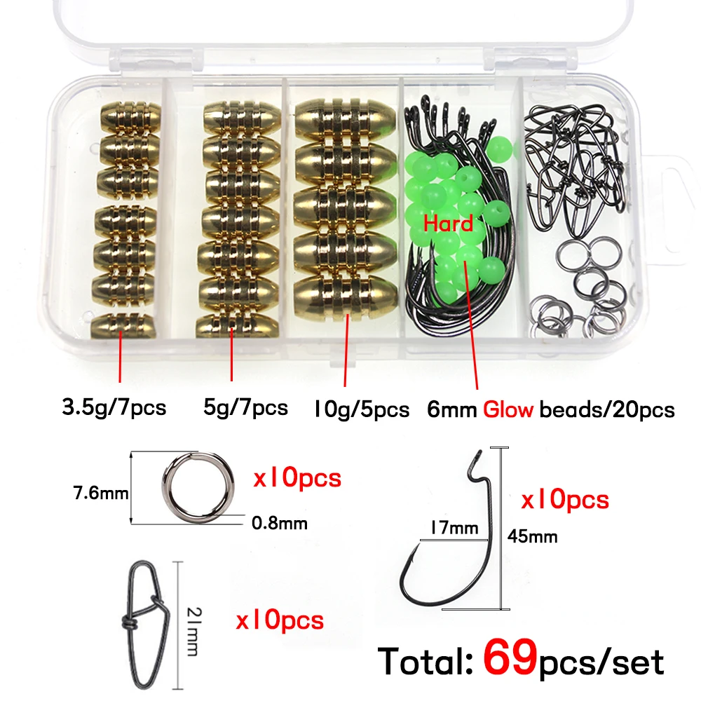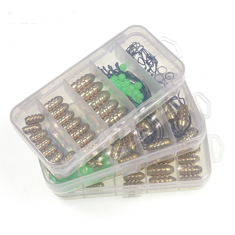 Bimoo Carolina/Texas Rig gran espacio gusano Fishhook cobre Bullet Sinker/peso cuentas luminosas Snap rápido equipo de pesca caja Set