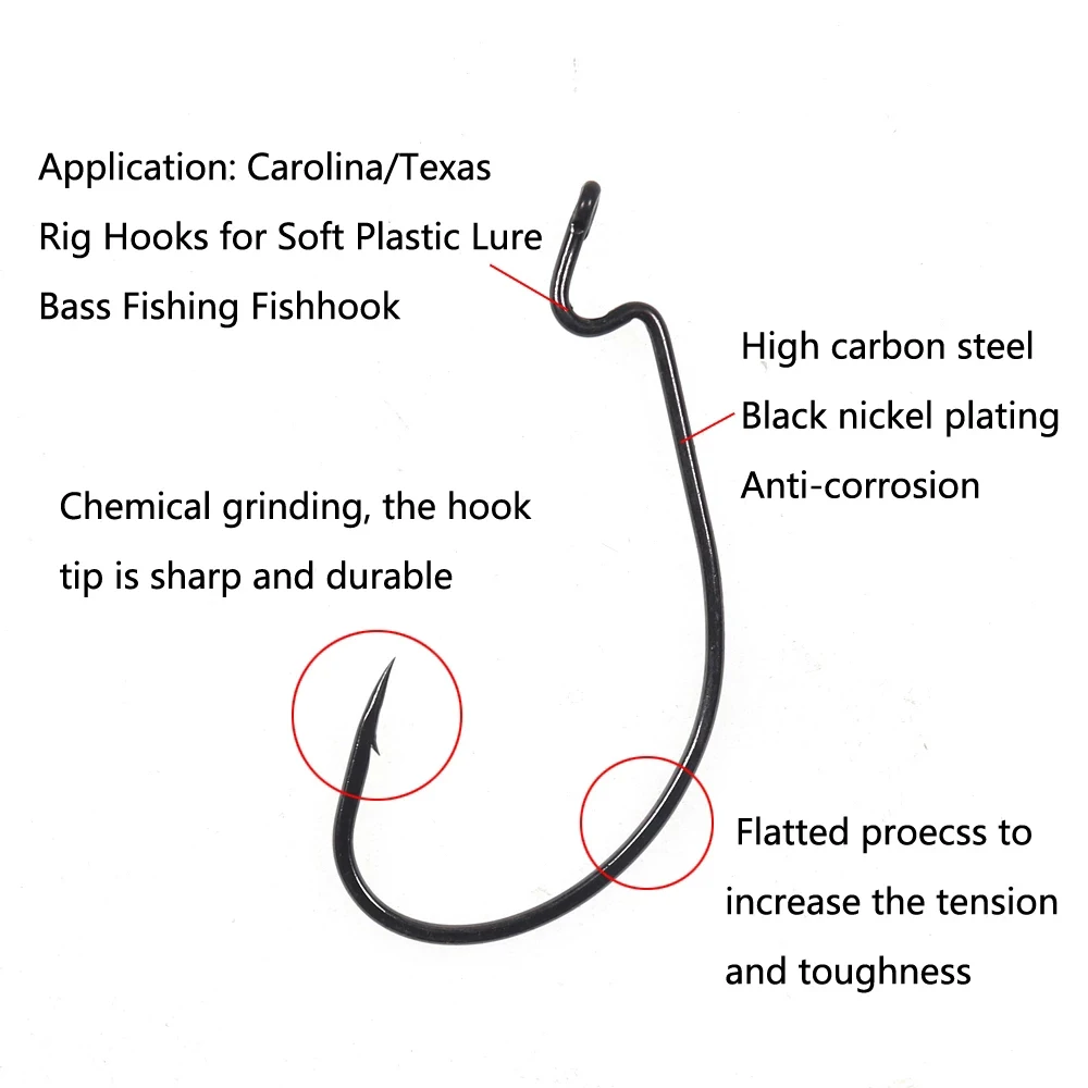 Anzuelos de pesca de Texas * 50 piezas (#2,#4,$6,#1/0,#2/0 cada 10 piezas)