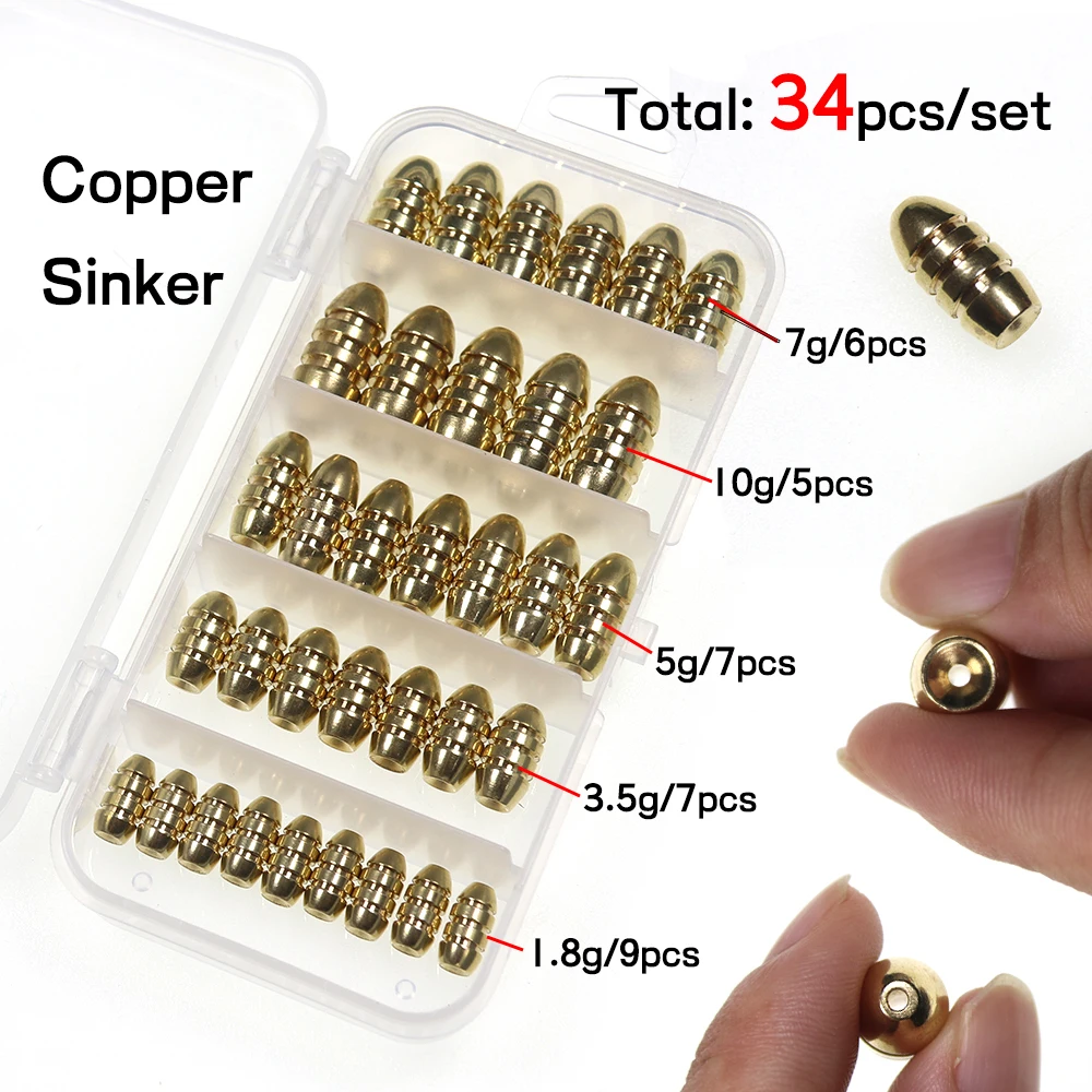 Bala cobre peso * 34 piezas (1,8g * 9 + 3,5g * 7 + 5g * 7 + 7g * 6 + 10g * 5)