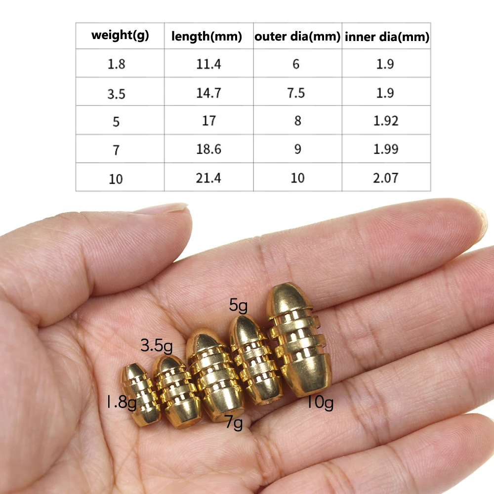 Peso de la bala de cobre * 15 piezas (1,8, 3,5g,5g,7g,10g cada 3 piezas)