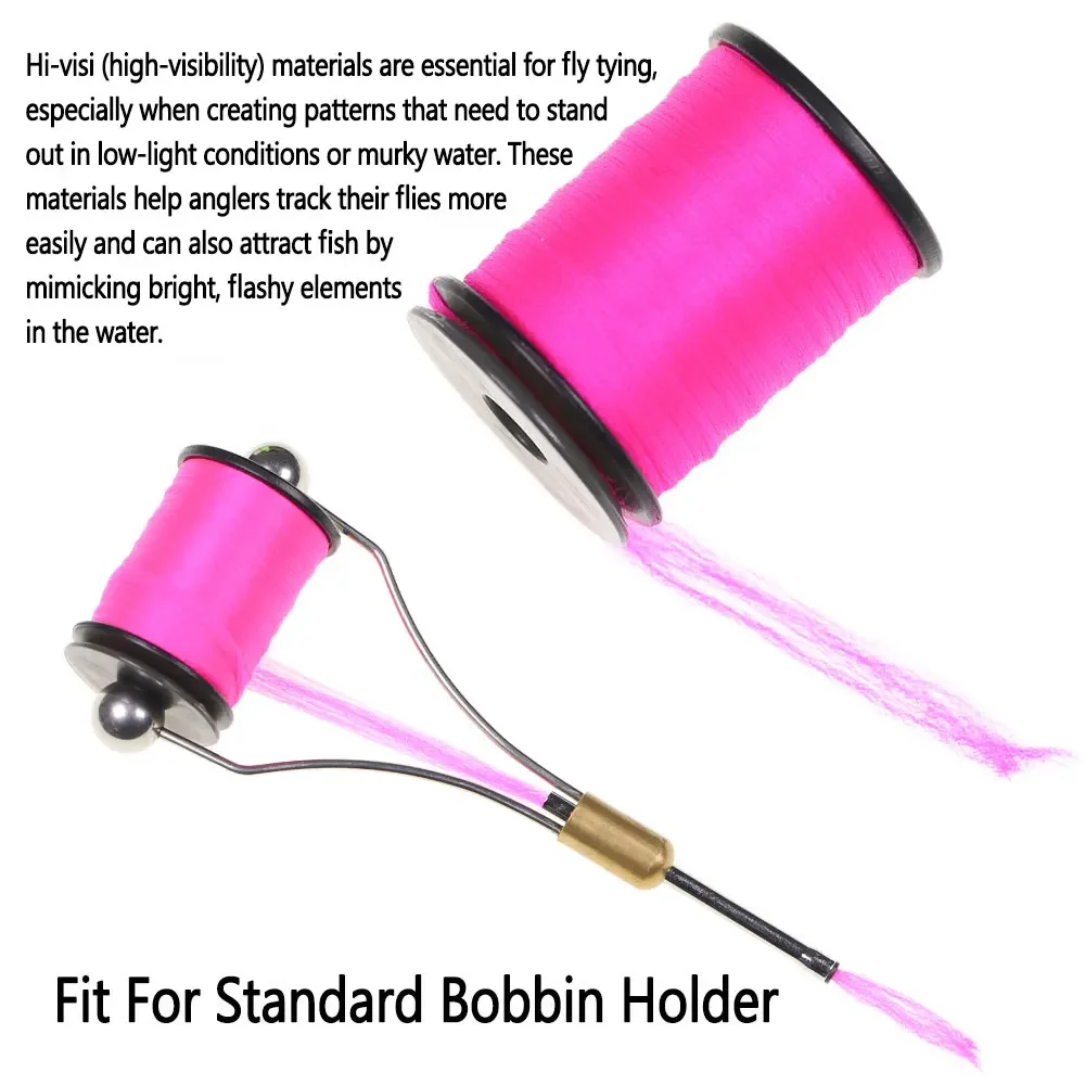 Los materiales de alta visibilidad (alta visibilidad) son esenciales para atar moscas, especialmente cuando se crean patrones que deben destacar en condiciones de poca luz o agua turbicia.Estos materiales ayudan a los pescadores a rastrear sus moscas más fácilmente y también pueden atraer peces imitando elementos brillantes y llamativos en el agua.