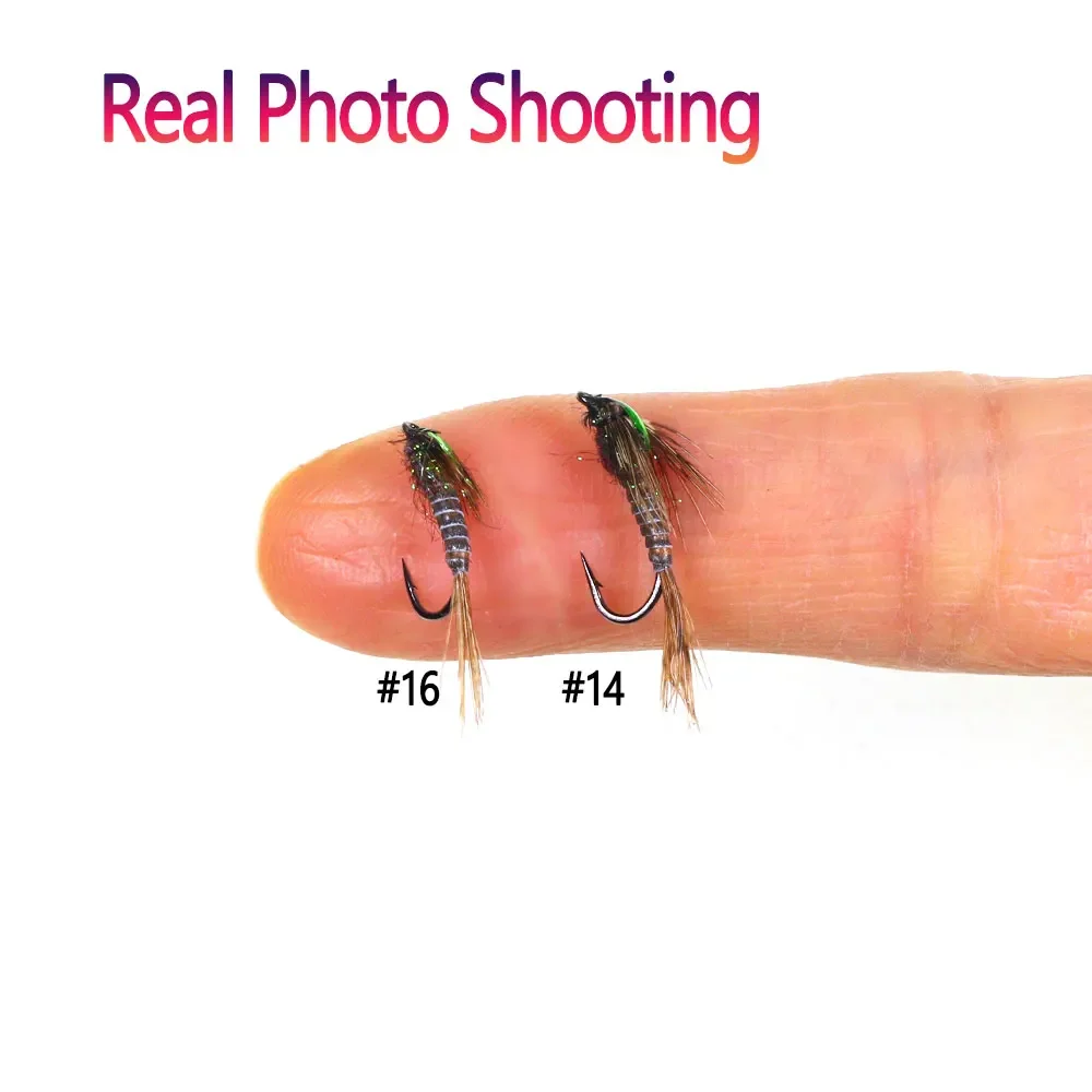 Bimoo-Señuelos de pesca de cola de faisán, cebos de cola de Ninfa marrón, Hackle Dry Fly para trucha, perca, 8, #14, #16