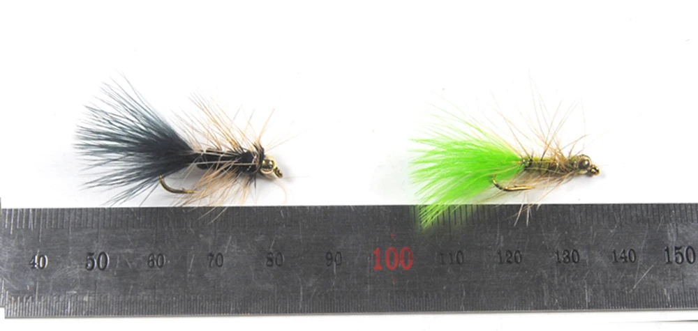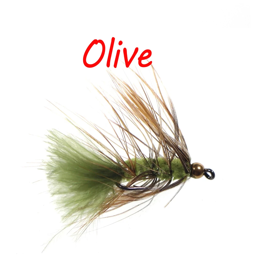 Bimoo-cebos de pesca con mosca húmeda, 8 unidades, color negro, Chartreuse, naranja, cuentas de oliva, cabeza de plomada, Streamer, trucha verde