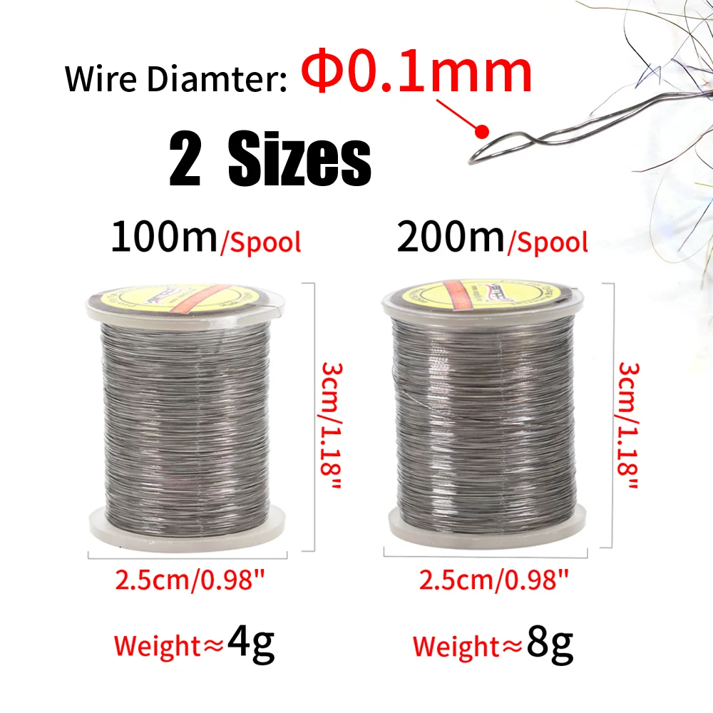 Bimoo, 0,1mm, 100m y 200m, cepillo de doblaje de acero inoxidable, alambre para atar moscas, alambre de cuerpo ponderado para serpentinas, Big Pike