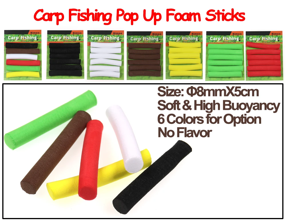 Bimoo Cilindro de Espuma para Pesca de Carpa, Palos Emergentes, Aparejo de Pelo, Cebo Amarillo, Marrón, Verde y Negro, 12mm, 8mm x 5cm, Colores Variados