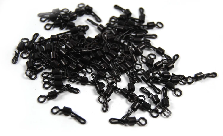 Bimoo 50 piezas en forma de Q de latón negro mate Kwik Clip giratorio de cambio rápido para aparejos de pesca de carpa accesorio tamaño 4