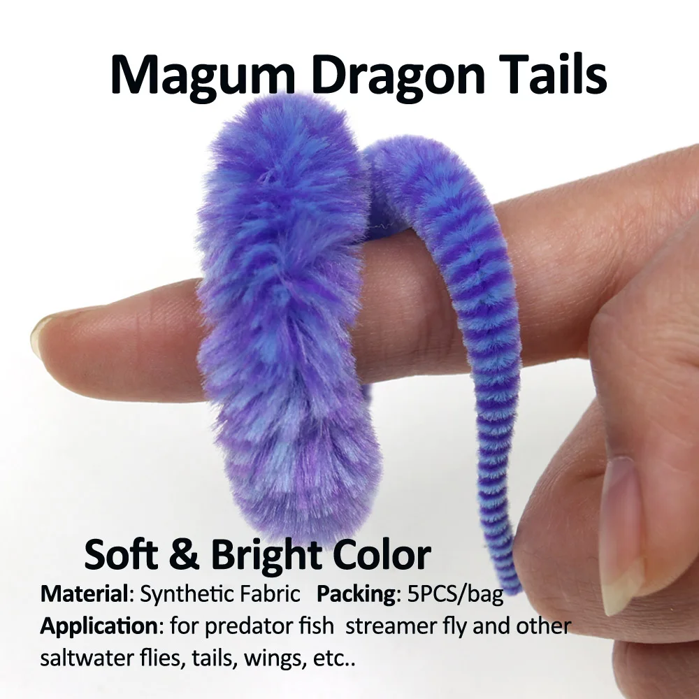 Bimoo 5 unids/pack grande Bicolor Magnum Dragon Tail Pike agua salada Fly Tying Material Streamer Cabeza de Acero Fly Tying Wiggle Tails