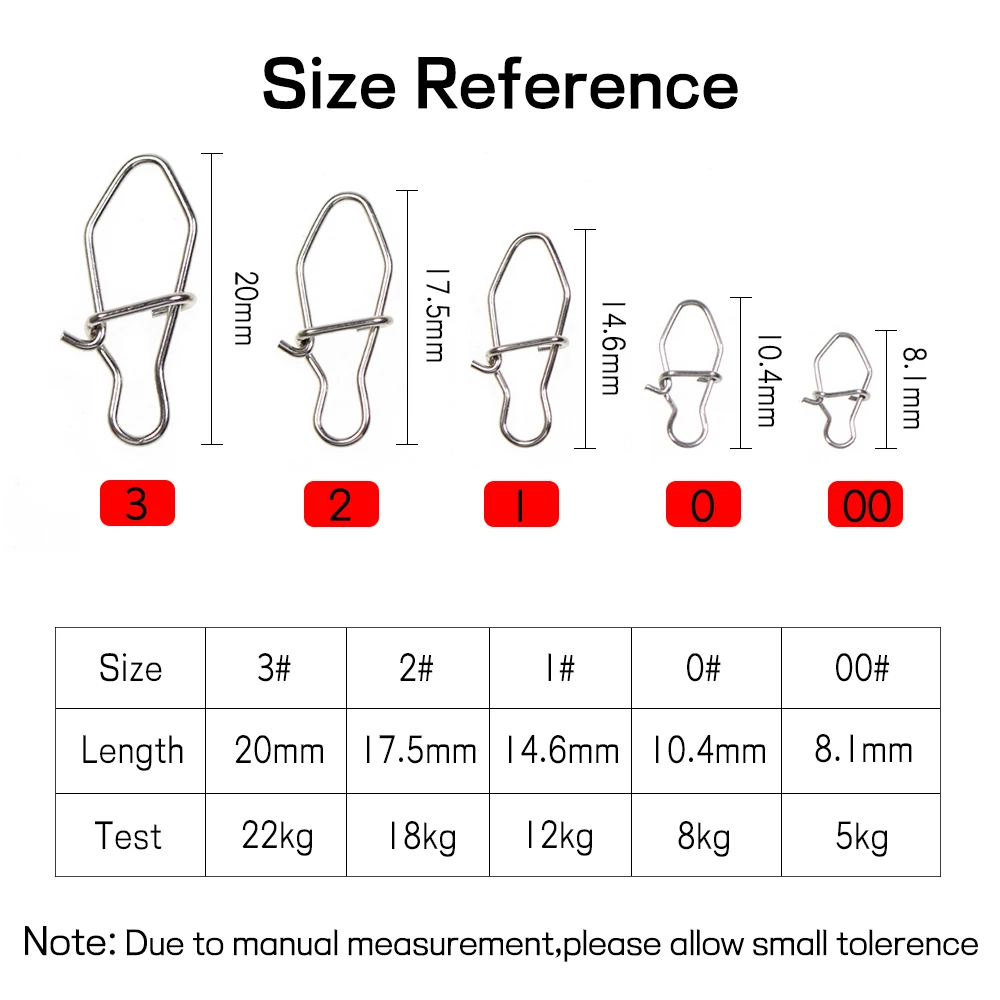 Bimoo 100 Uds. Conector de señuelo de pesca a presión de acero inoxidable con ojo de diamante, Pin de bloqueo de Clip rápido, accesorios de pesca de agua dulce y salada