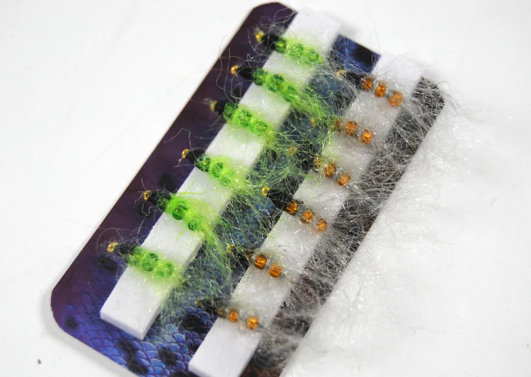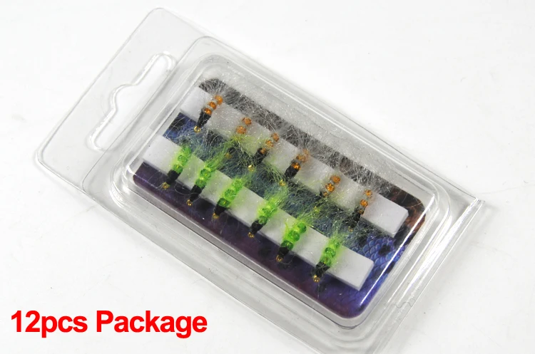 Bimoo Glass Bead Caddis Larva Pupa Ninfa Pesca Moscas Trucha Pesca Cebo Señuelos Hegene Tamaño #14 Color Verde y Naranja
