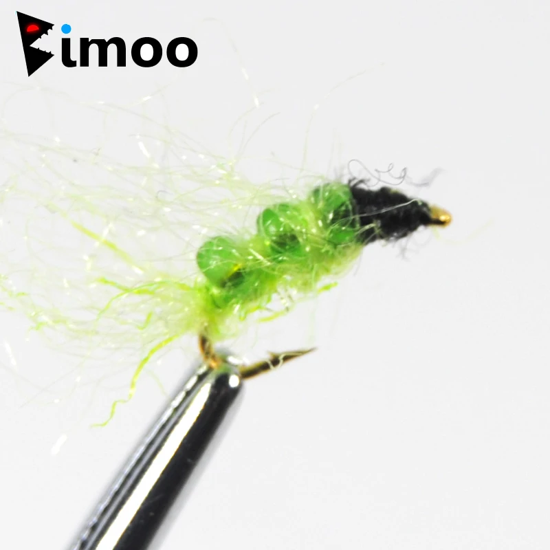 Bimoo Glass Bead Caddis Larva Pupa Ninfa Pesca Moscas Trucha Pesca Cebo Señuelos Hegene Tamaño #14 Color Verde y Naranja
