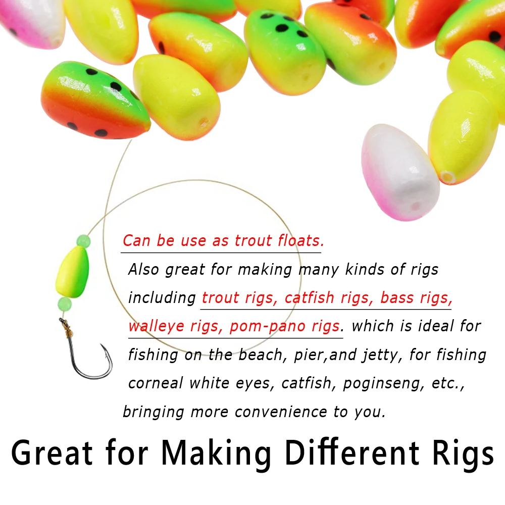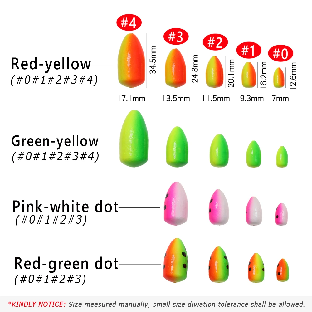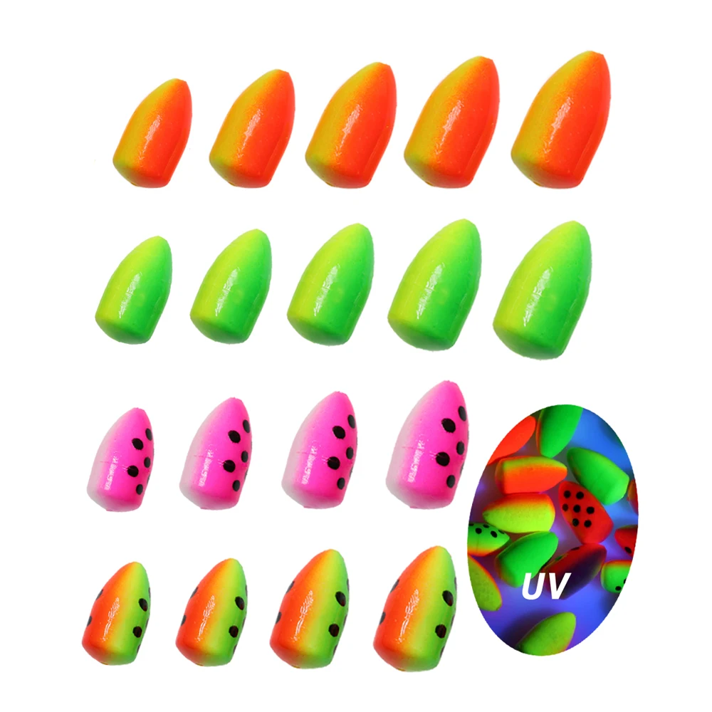 Bimoo 100 Uds espuma UV flotador en línea Bobbers trucha Indicador de pesca con mosca bagre Lucio cebo vivo Pompano Walleye Rigs flotador de agua salada