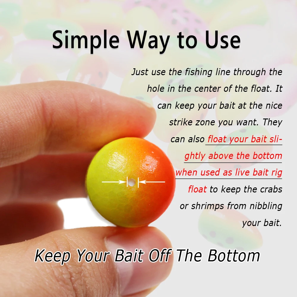 Puede mantener su cebo en la bonita zona de ataque que desee. Simplemente use la línea de pesca a través del agujero en el centro del flotador. También pueden hacer flotar su cebo ligeramente por encima del fondo cuando se usa como flotador de aparejo de cebo vivo para evitar que los cangrejos o gambas mordisqueen su cebo.