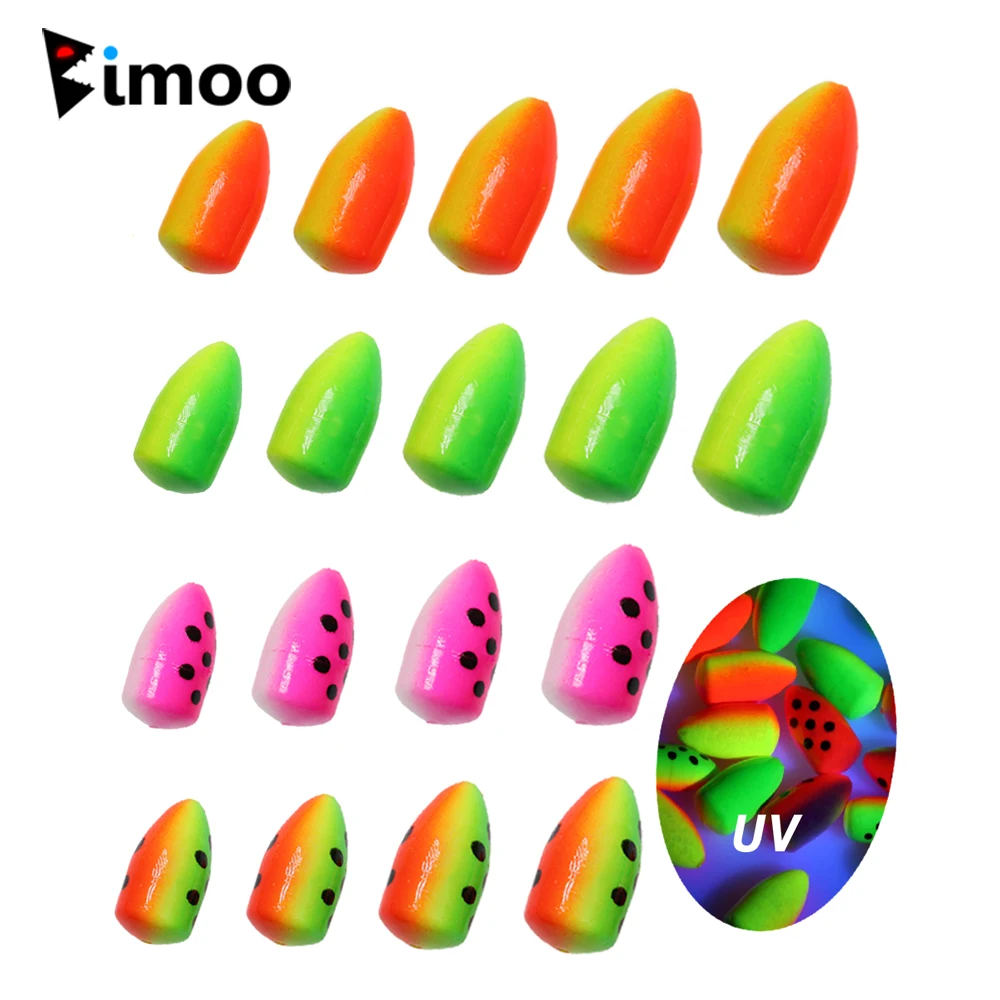 Bimoo 100 Uds espuma UV flotador en línea Bobbers trucha Indicador de pesca con mosca bagre Lucio cebo vivo Pompano Walleye Rigs flotador de agua salada