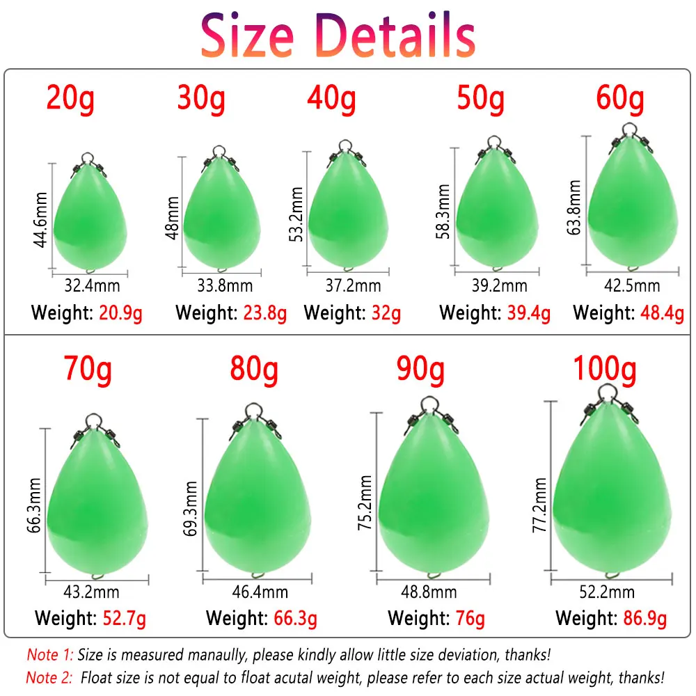 Nota 2: El tamaño del flotador es igual al peso del flotador, Consulte el peso real de cada tamaño, ¡Gracias!