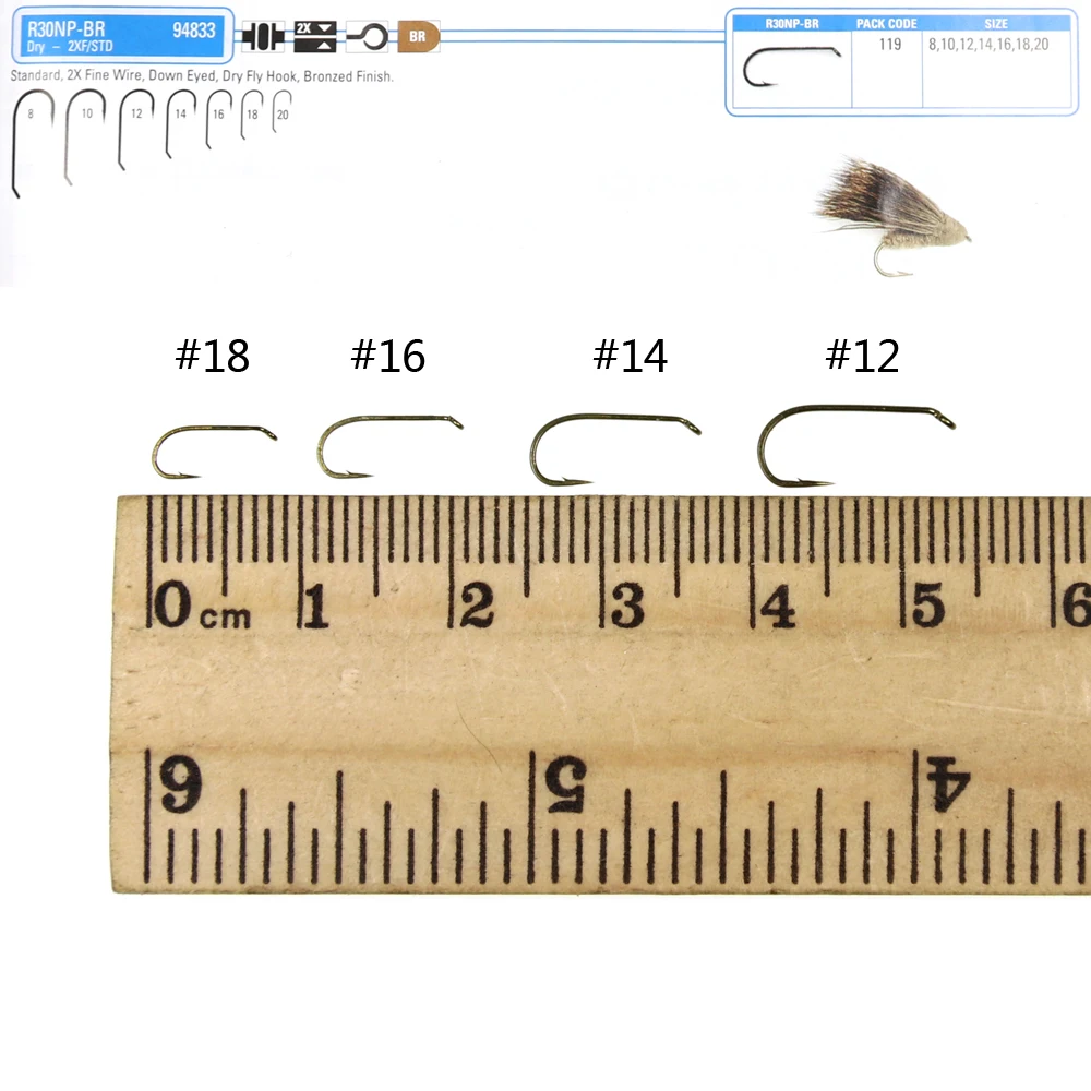 Anzuelo estándar para moscas secas, alambre fino 2X, con ojo hacia abajo, acabado bronceado