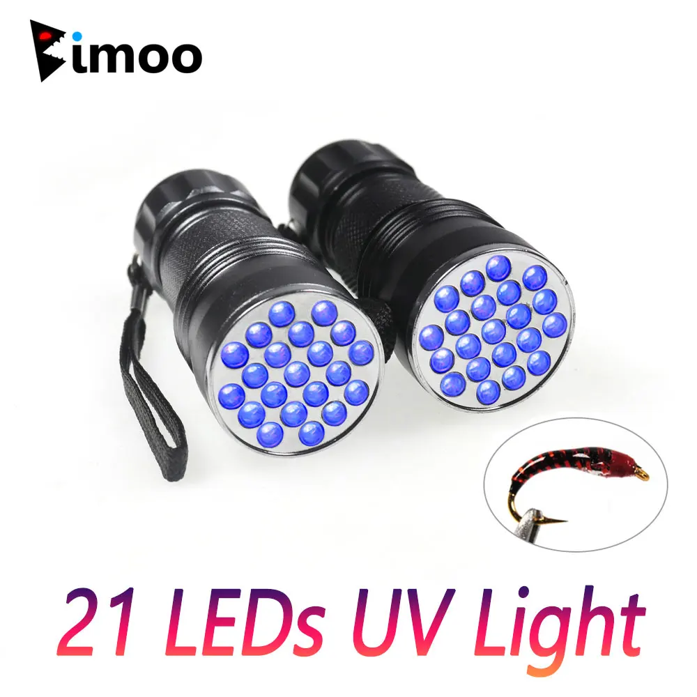 Bimoo 21 LED luz UV herramienta para atar moscas de pesca 365nm ~ 410nm multifunción lámpara de curado UV antorcha ninfa zumbador cabeza herramienta de curado epoxi
