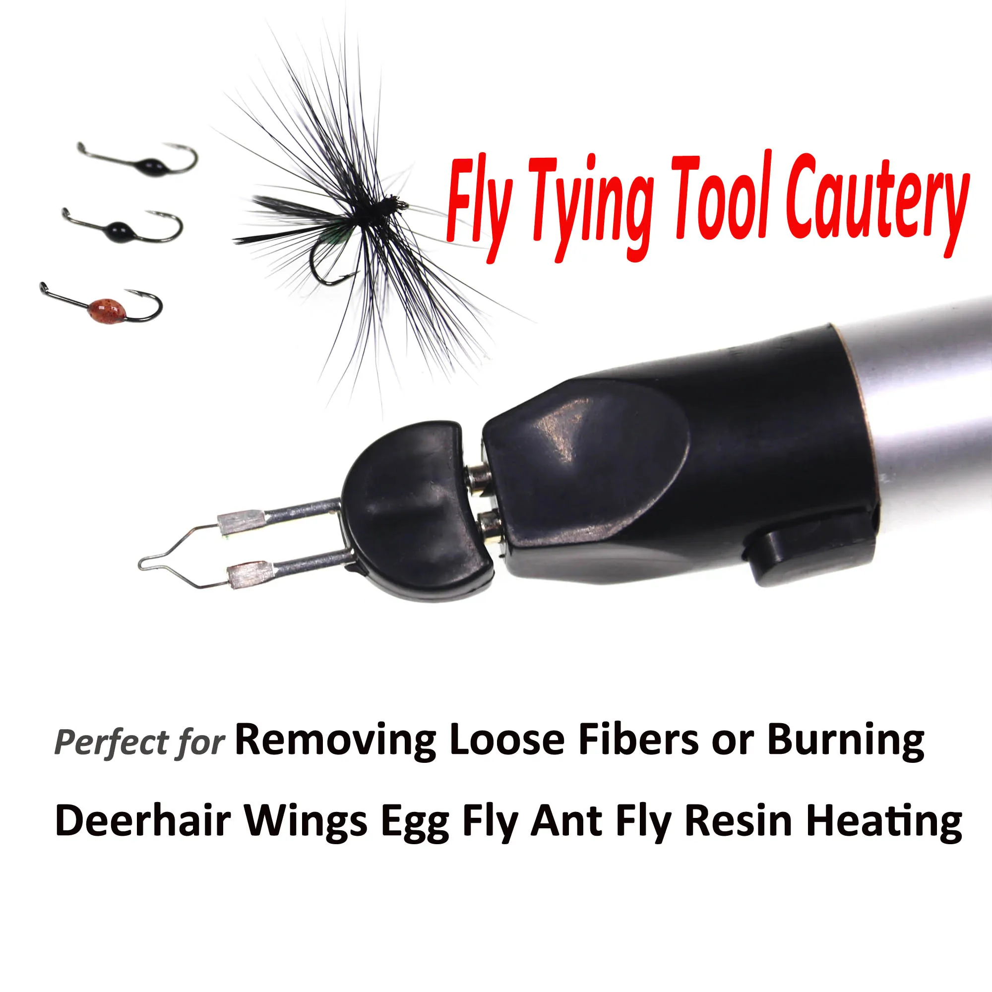 Bimoo Herramienta de caratería para atar moscas de calentamiento rápido para eliminar fibras sueltas que queman alitas de venado, electrocoagulador de resina para moscas de huevo y hormigas