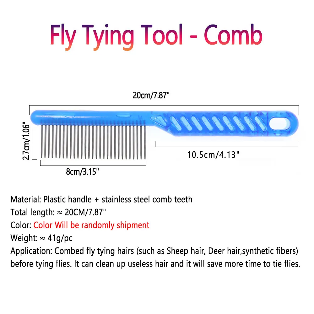 Aplicación: Cabello peinado para atar moscas (como pelo de oveja, pelo de ciervo, fibras sintéticas) antes de atar moscas.Puede limpiar el cabello inútil y ahorrará más tiempo para atar moscas. Nota: El color del peine se enviará al azar, gracias por su comprensión.