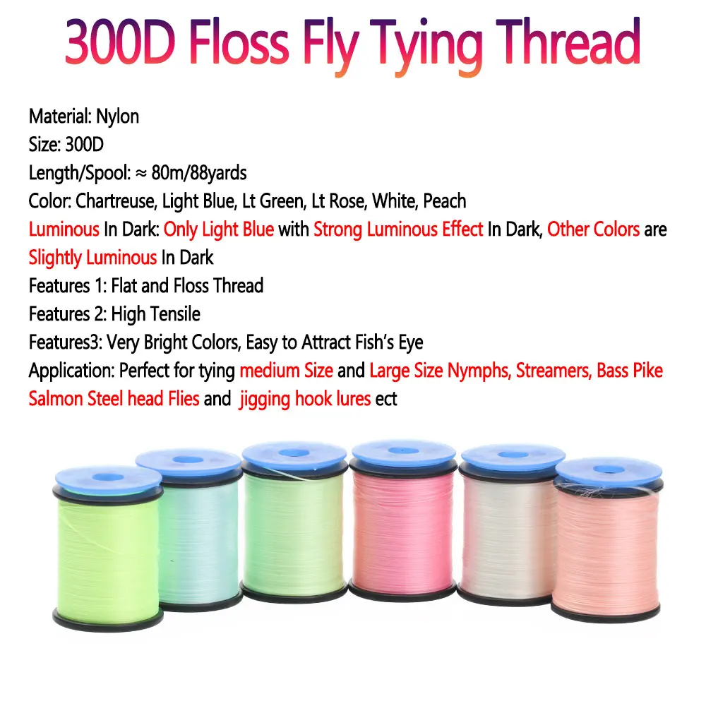 Bimoo, 1 pieza, hilo luminoso 300D para atar moscas, línea de alta resistencia para Ninfa, serpentinas, lubina, Señuelos de Pesca, anzuelo de asistencia