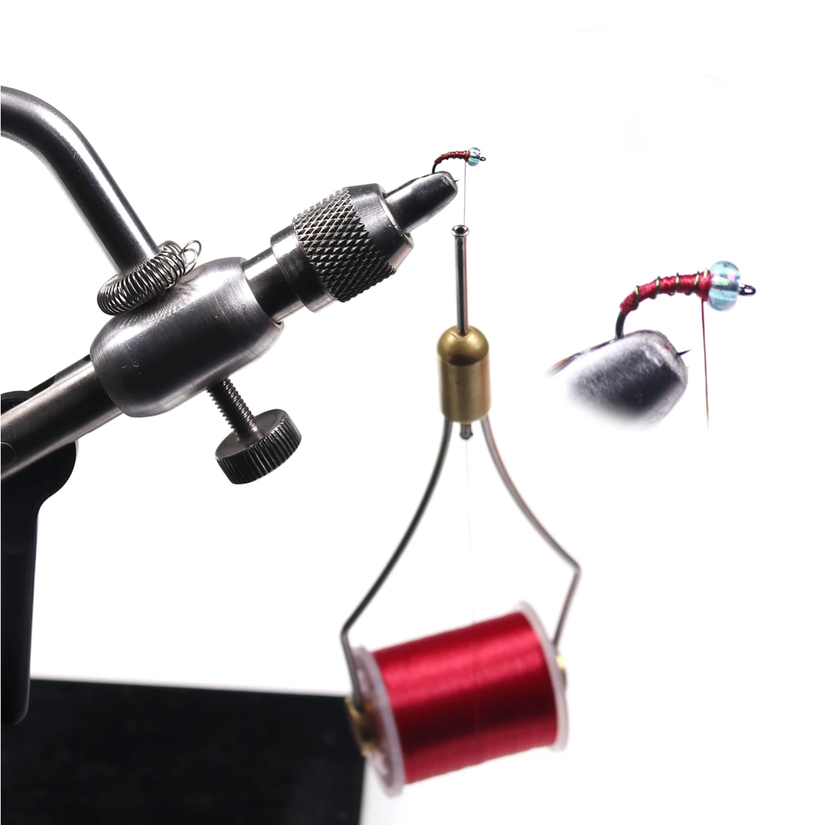 Mosquito de color brillante y pequeño hilo para atar moscas secas