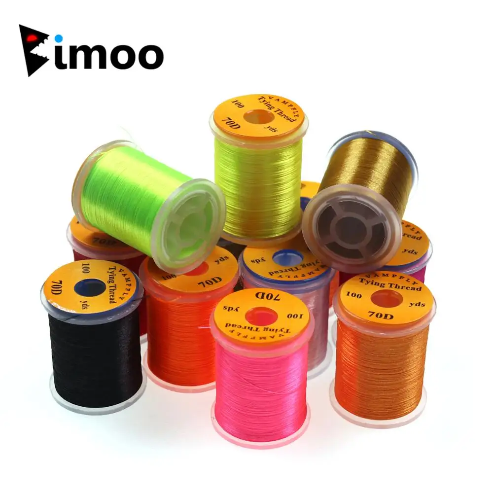 Bimoo 12 unids/set 70D hilo para atar moscas para tamaño 14 ~ 22 Midge Nymph pequeñas moscas secas señuelo de pesca con mosca Material 12 colores de mezcla