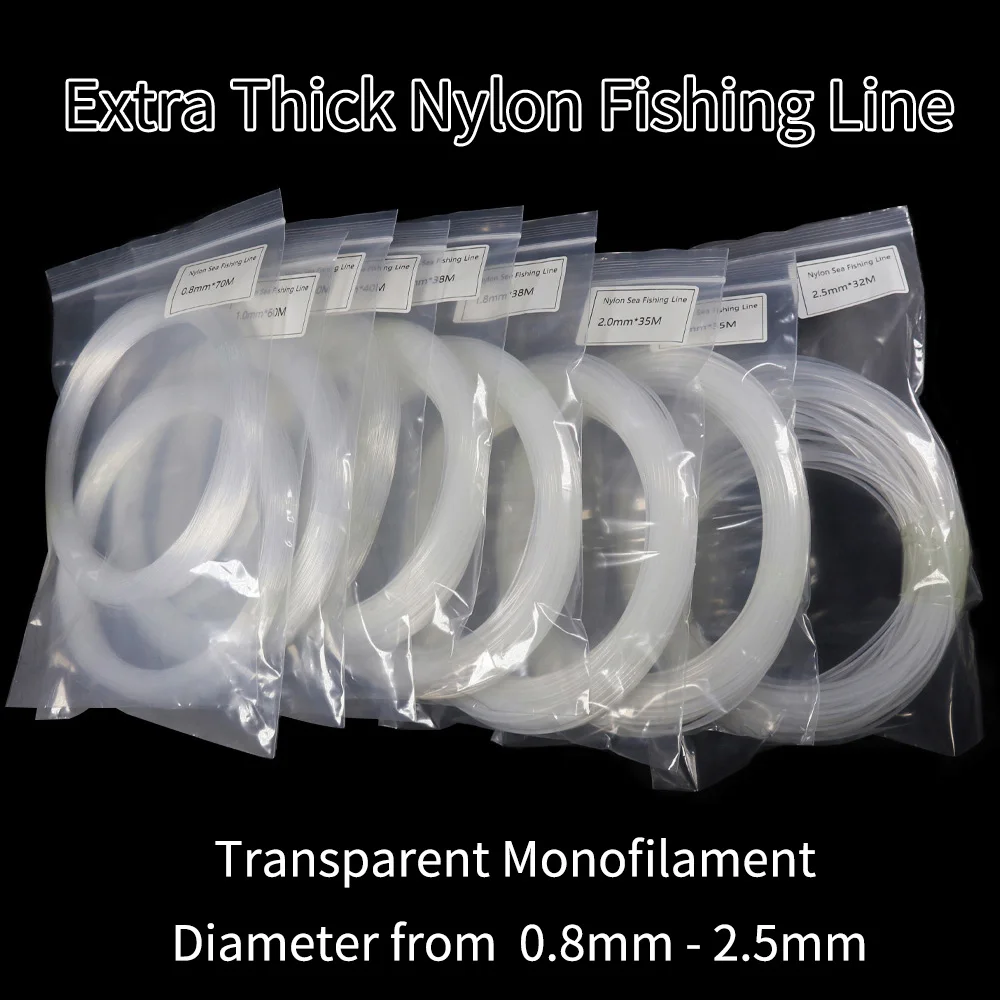 Bimoo Extra gruesa pesca en el mar línea de nailon fundido largo tamaño grande monofilamento transparente 0,7mm-2,2mm diámetro cometa cuerda