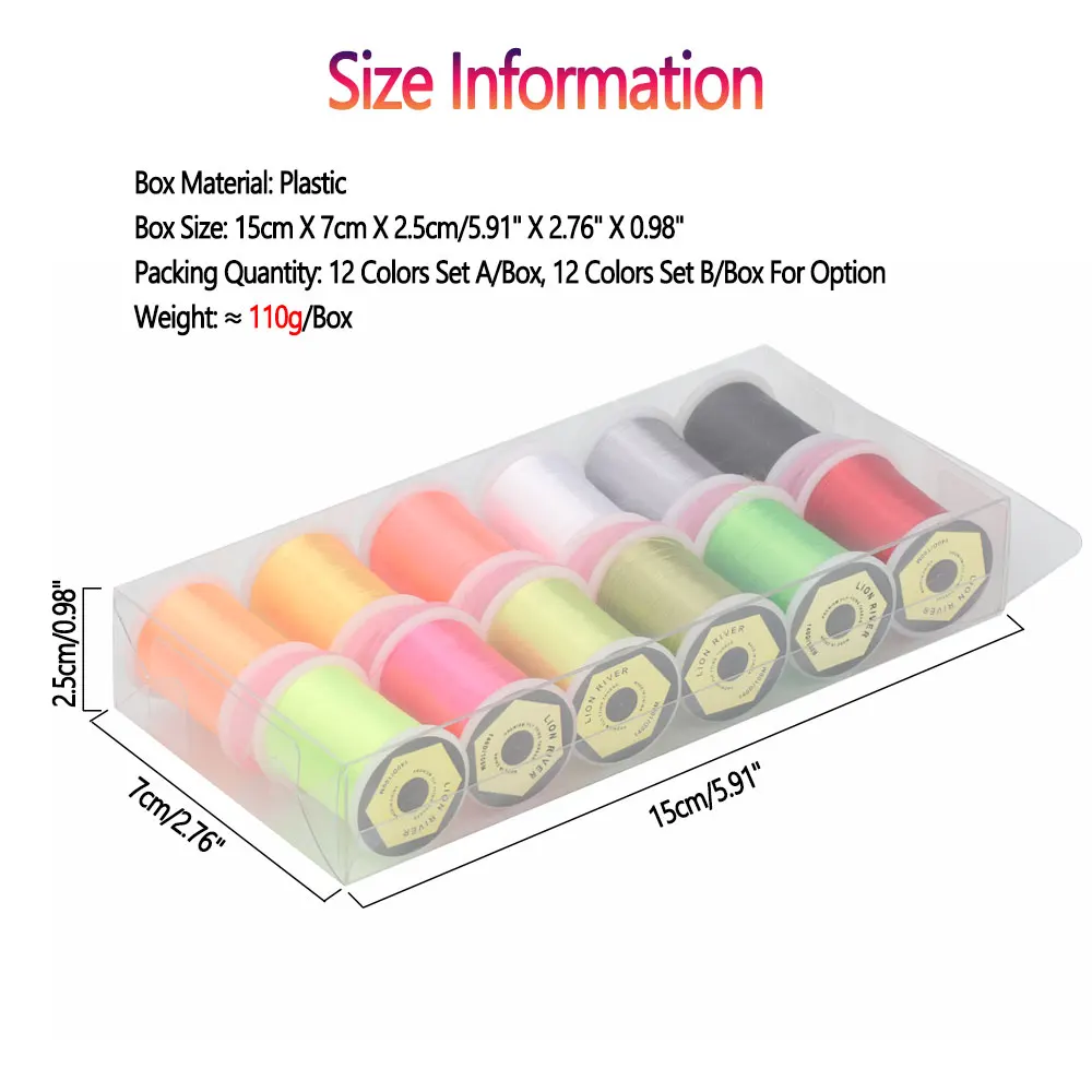 Bimoo-Señuelos de Pesca de Trucha, Serpentinas de Ninfas, Material de Atado de Moscas Secas y Húmedas, Colores Surtidos, 140D, 12, 24, 2017