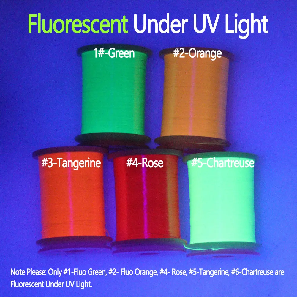 #4-Rosa, #5-Mandarina, #6-Chartreuse son fluorescentes bajo luz UV.