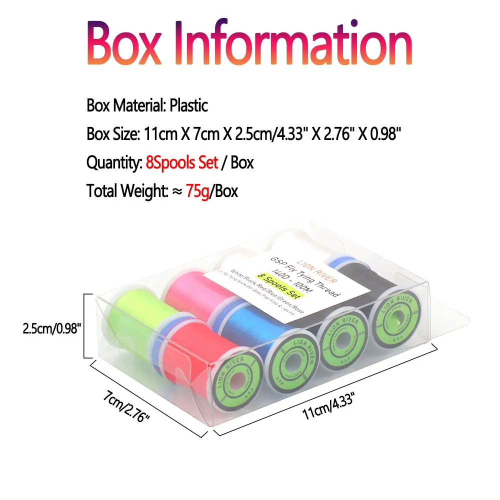 Bimoo Juego de 8 carretes 140D GSP Atado de moscas Hilo de hilo de polietileno Hilo de atado de alta resistencia Pesca en el mar Lucio Lubina Moscas Jig Señuelos