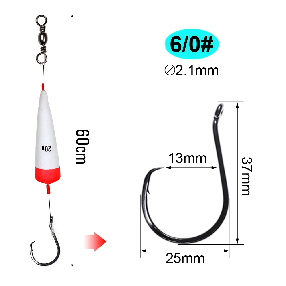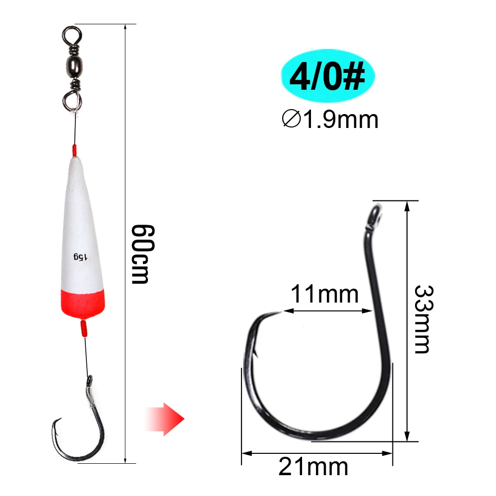 Material del gancho: acero rico en carbono, tamaño: #4/0 #5/0 #6/0 para elegir
