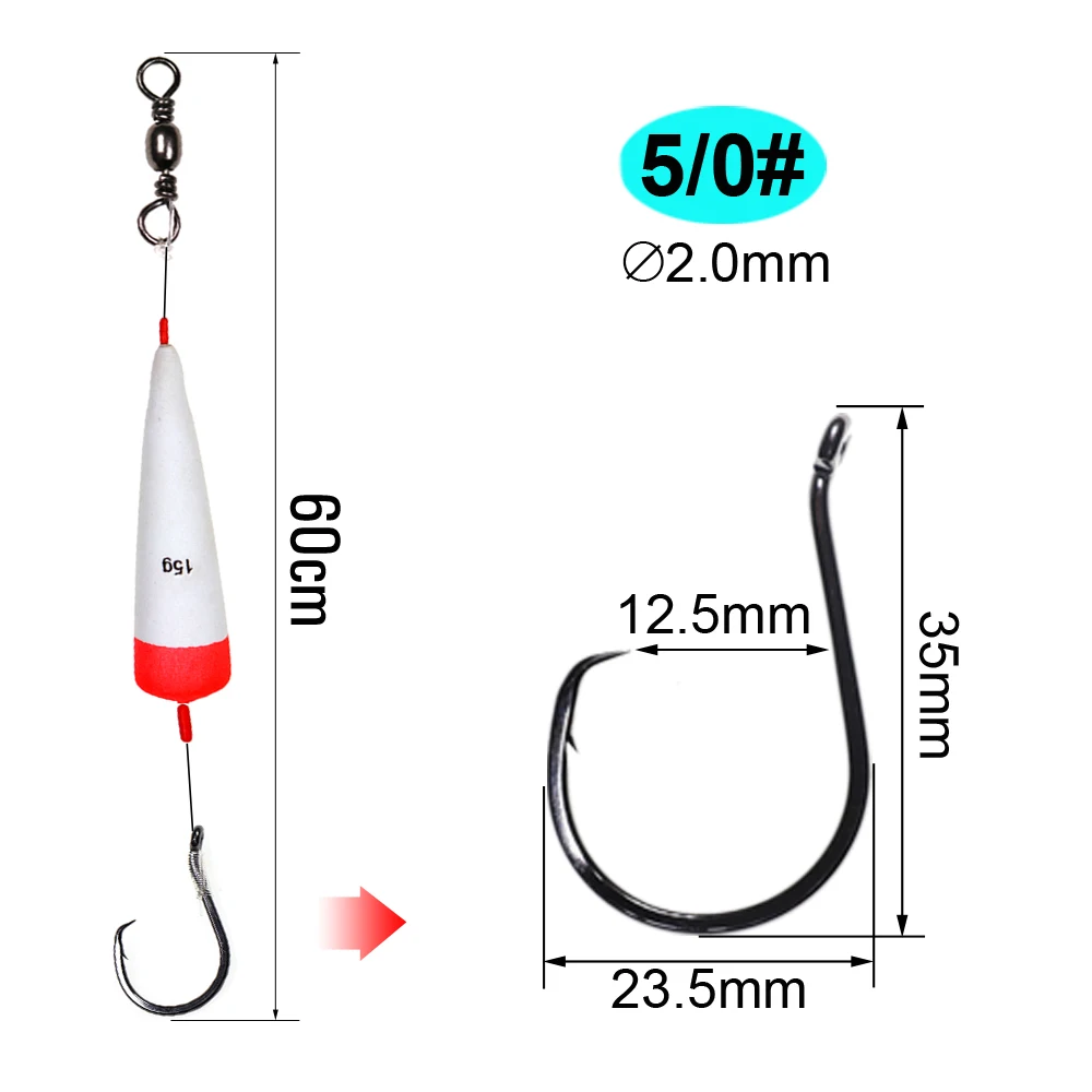 Bimoo 1 Juego de pesca de pez gato de cabeza plana de canal azul, aparejo de pesca de carpa flotante deslizante con anzuelos de águila hechos a mano 3/0 4/0 5/0