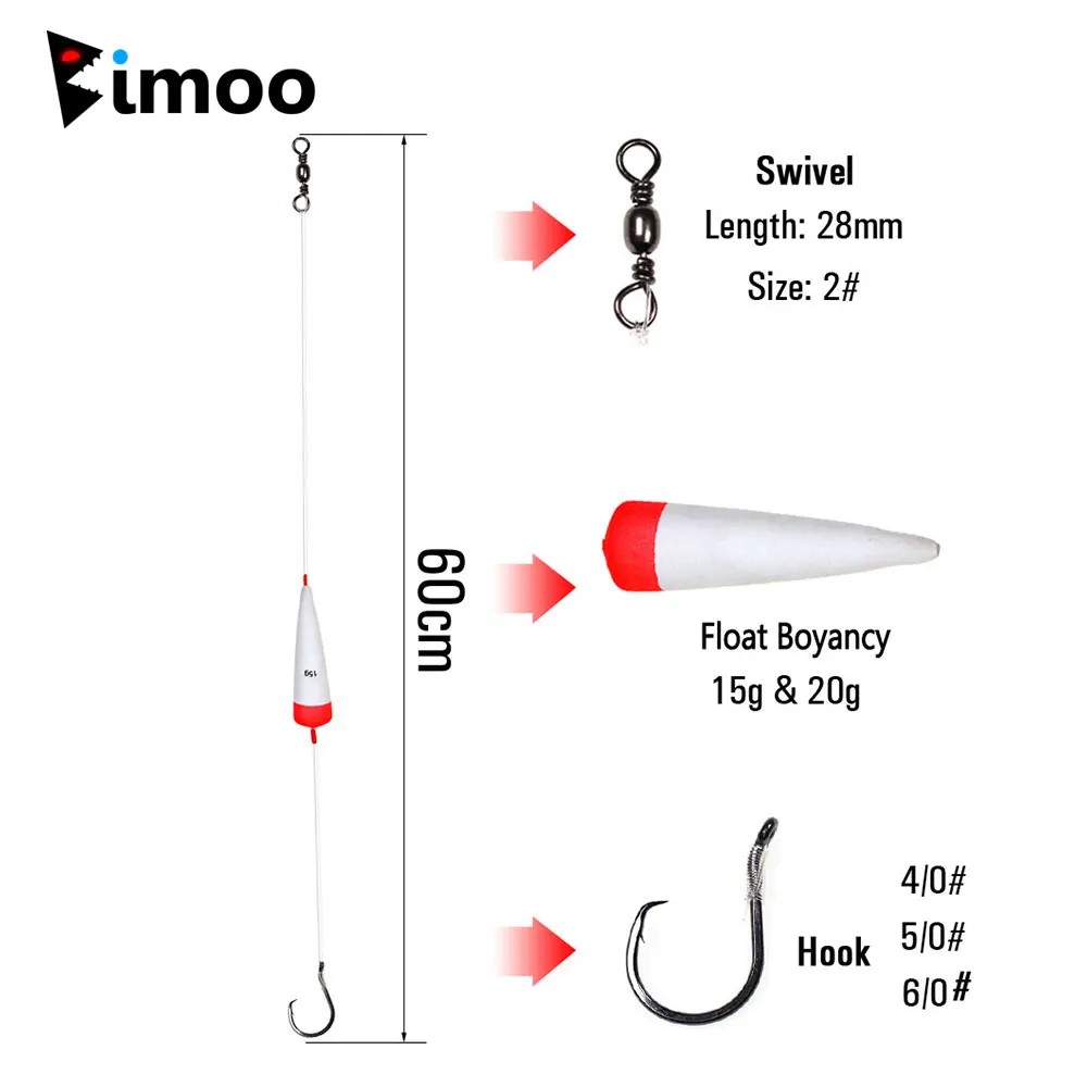 Bimoo 1 Juego de pesca de pez gato de cabeza plana de canal azul, aparejo de pesca de carpa flotante deslizante con anzuelos de águila hechos a mano 3/0 4/0 5/0