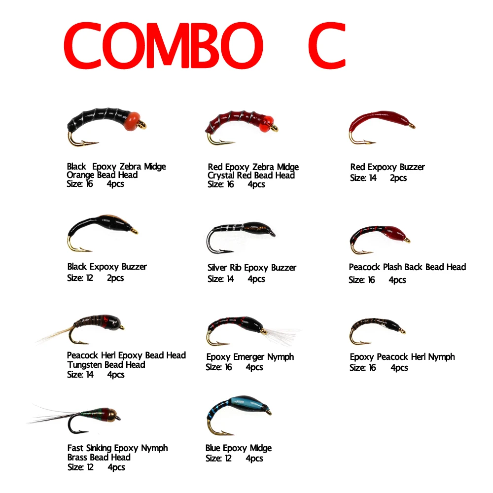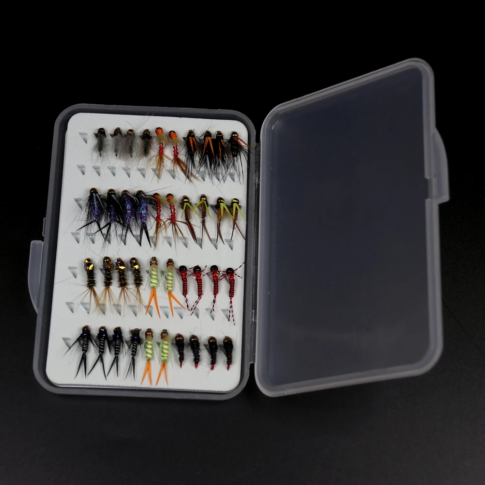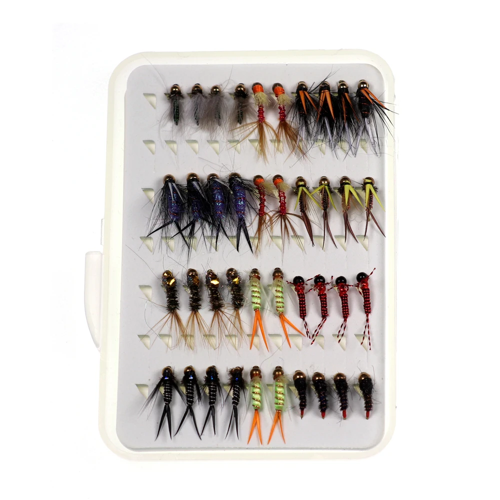 Bimoo 40 piezas/caja cabeza de cuenta de Ninfa recubierta de epoxi conjunto de Ninfa pesca mosca trucha azul branquio cebo de pesca tamaño #12 #14 #16