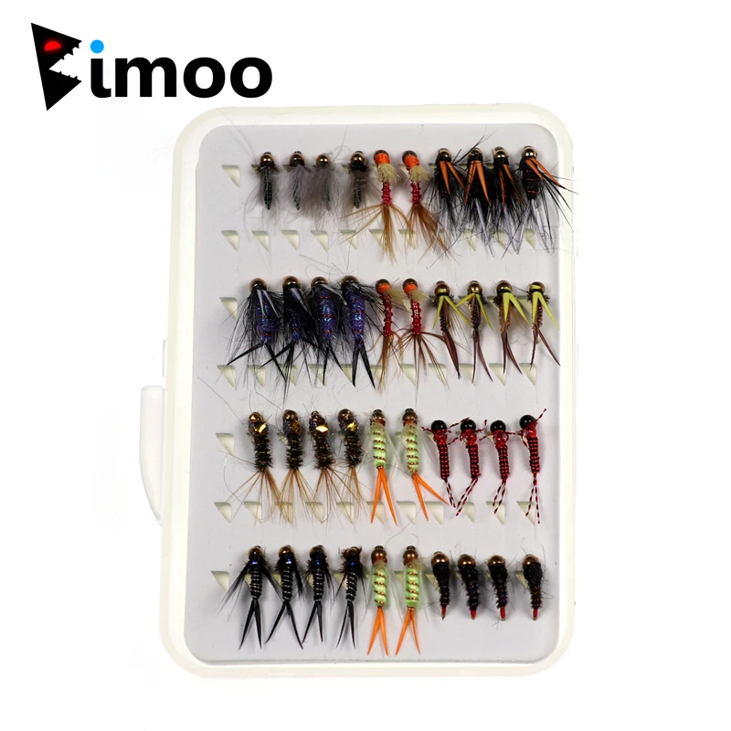 Bimoo 40 piezas/caja cabeza de cuenta de Ninfa recubierta de epoxi conjunto de Ninfa pesca mosca trucha azul branquio cebo de pesca tamaño #12 #14 #16