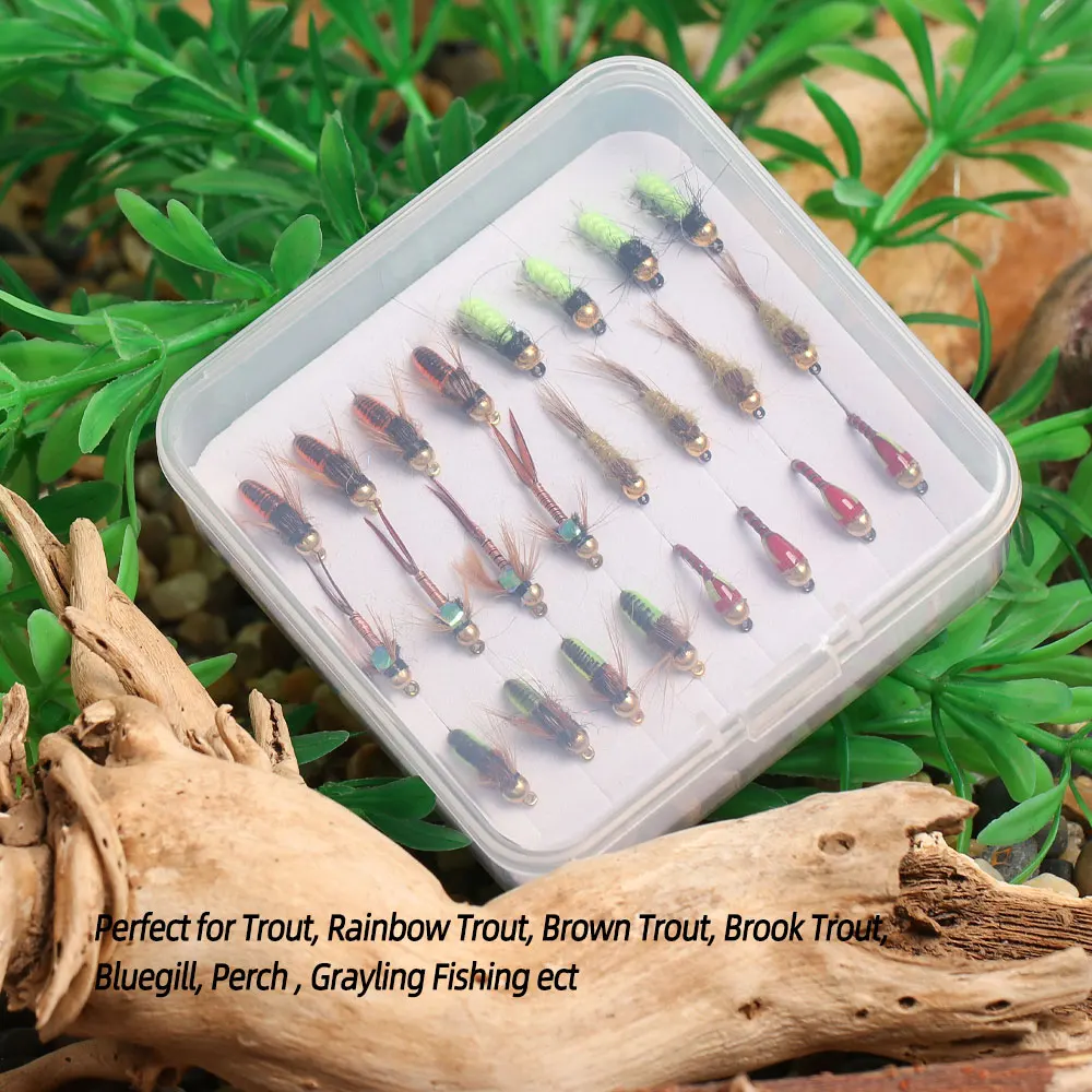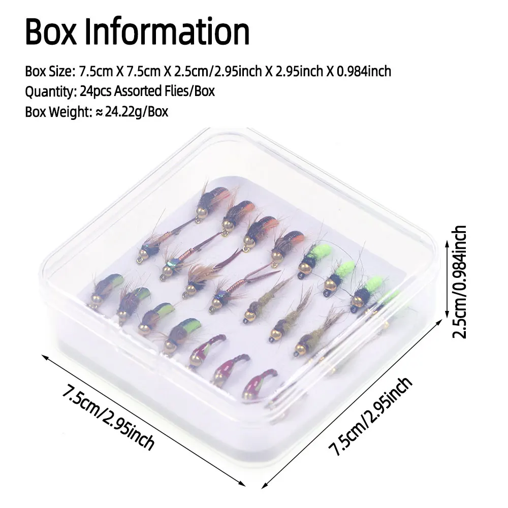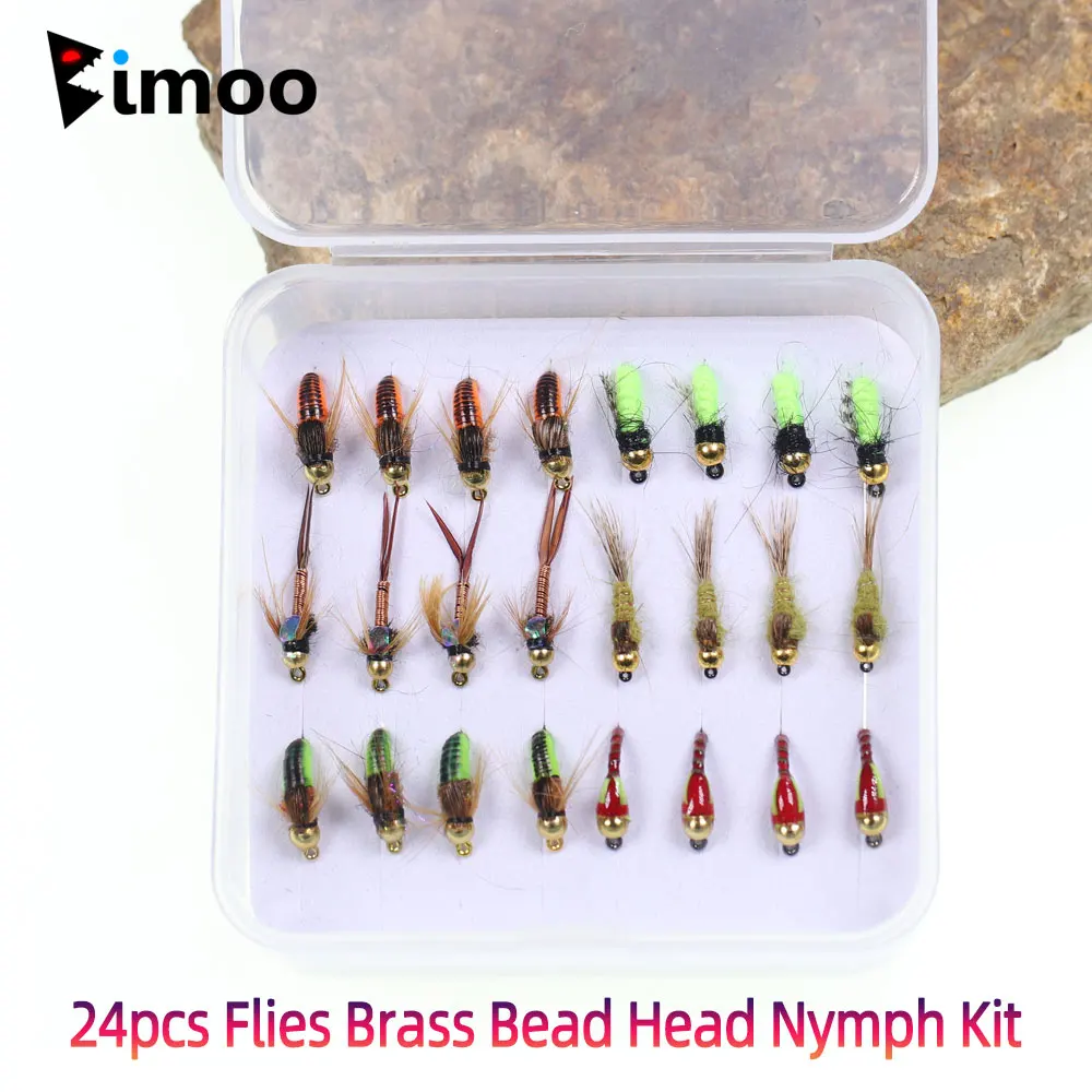 Bimoo 24 unids/caja Kit de ninfa con cabeza de cuentas de latón hundimiento rápido Ninfa húmeda cebo Artificial para insectos trucha perca Grayling señuelos de pesca con mosca