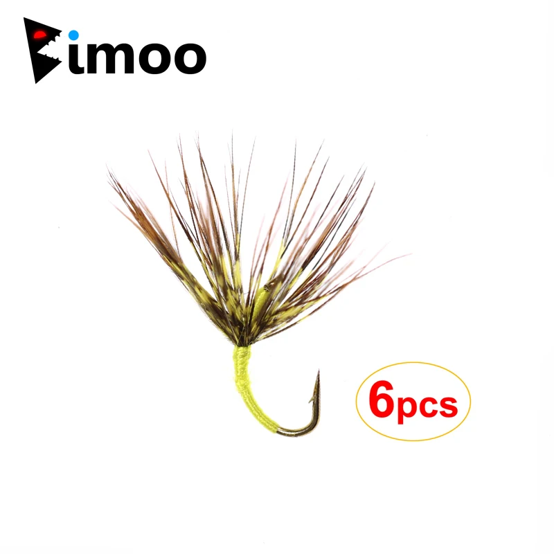 Bimoo 6 PCS/Lot Yellow Tenkara Wet Flies Tamaño #12 Simple Lake Streams Native Brown Brook Trucha Fuentes de alimentos Señuelos Moscas