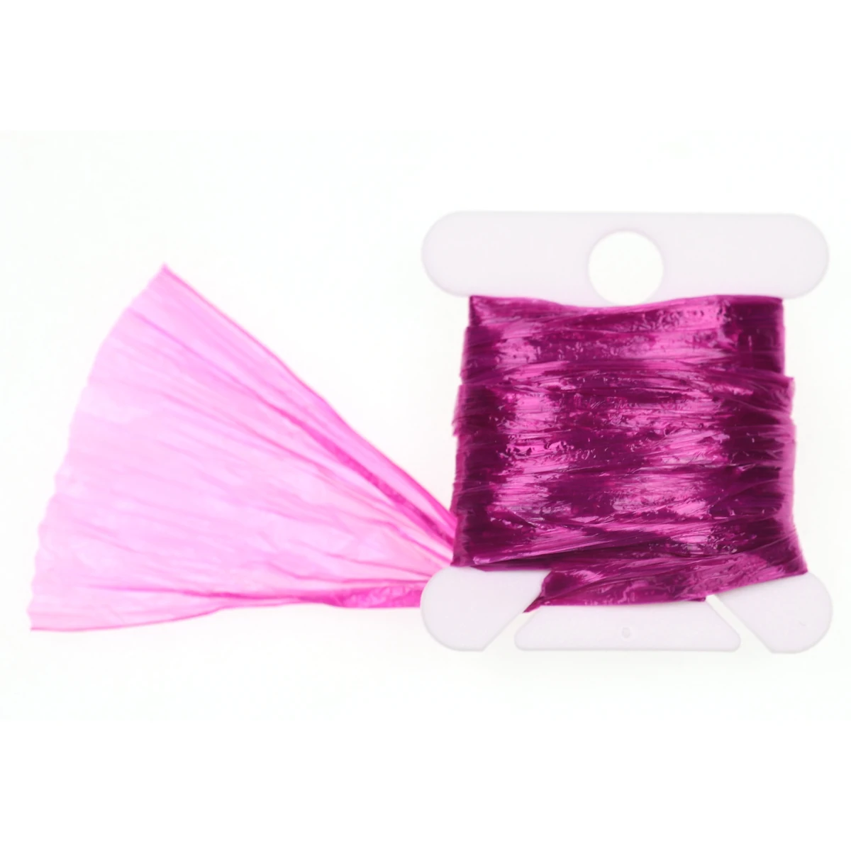 Se trata de un material sintético que es flexible y quebradizo cuando está seco, pero después de humedecer se vuelve perfectamente flexible, aún más translúcido y hace todo tipo de cosas útiles en las moscas: estiradas como una cáscara sobre un escarabajo o un torácico de ninfa;o atado como un ala: vertical o inclinada hacia atrás.Se puede colorear con un rotulador y recortar fácilmente para darle forma.