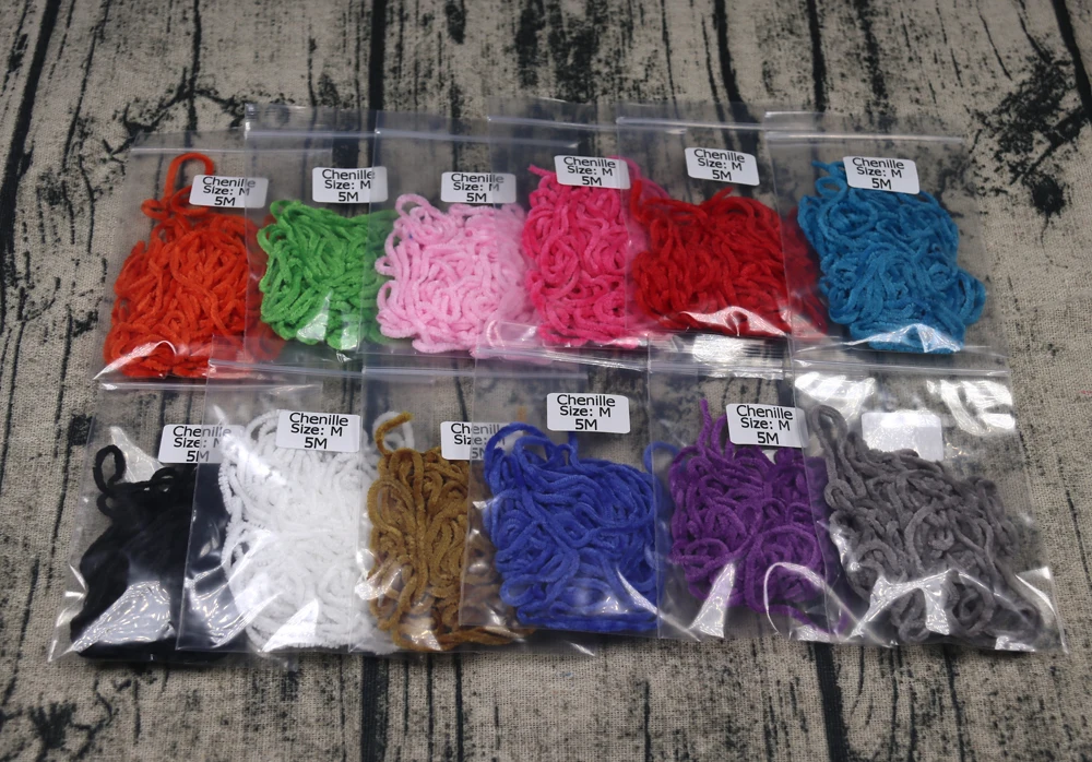 Bimoo Tamaño M 5 m/bolsa Material para atar moscas Chenille Wooly Bugger atado Chenille Blanco Verde Naranja Negro Púrpura Color