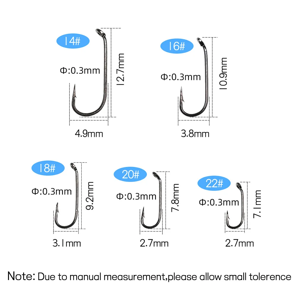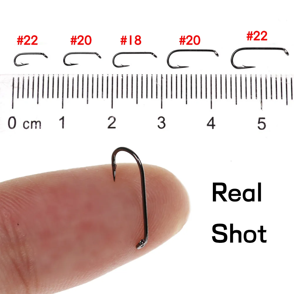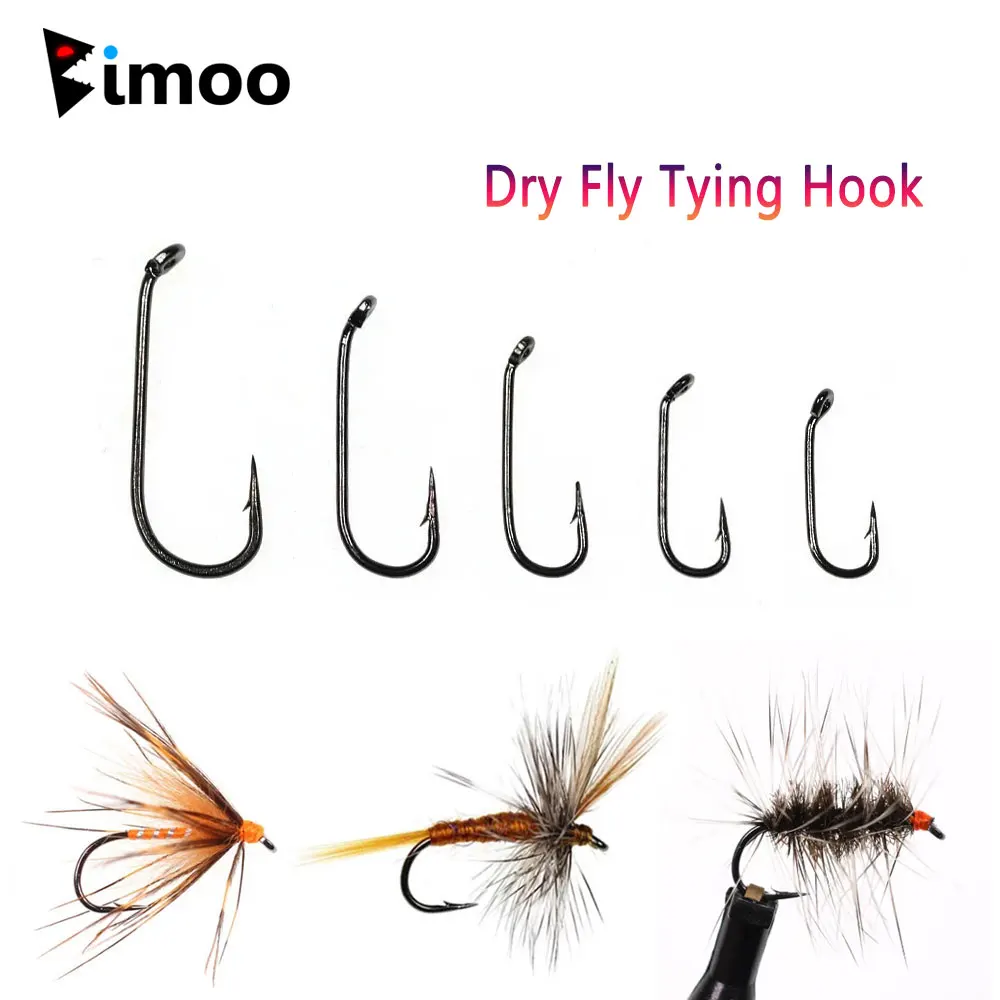 Bimoo Venta al por mayor 1000 piezas#14~#22 gancho para atar moscas secas de acero con alto contenido de carbono para atar Tenkara Fly Adams Señuelos de pesca de trucha Caddisfly con mosca seca
