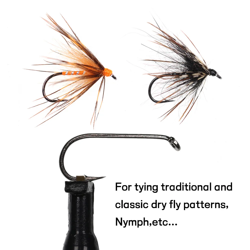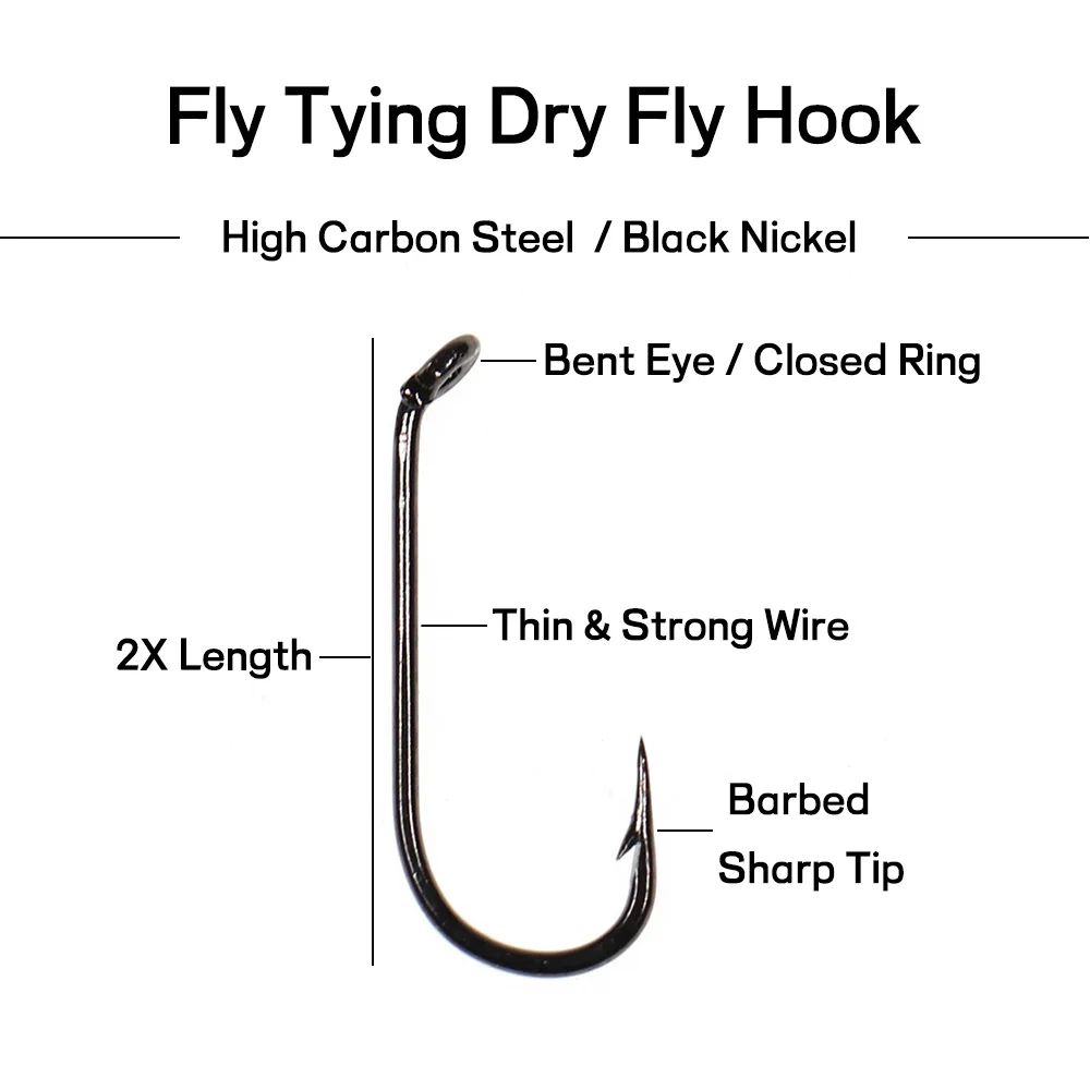Alambre fuerte y fino, vástago de 2 aumentos de longitud, ojo doblado, anillo cerrado, punta afilada.Para atar patrones de moscas secas tradicionales y clásicos, como Adams Caddis Fly, puede volar el Wullf real y la ninfa tenkara, etc....