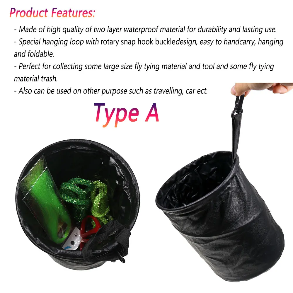 Bimoo Mini cubo de basura de pesca, 1 unidad, cesta de basura impermeable, herramientas para atar moscas, bandeja de basura para acampar, Cubo de almacenamiento, aparejos de pesca