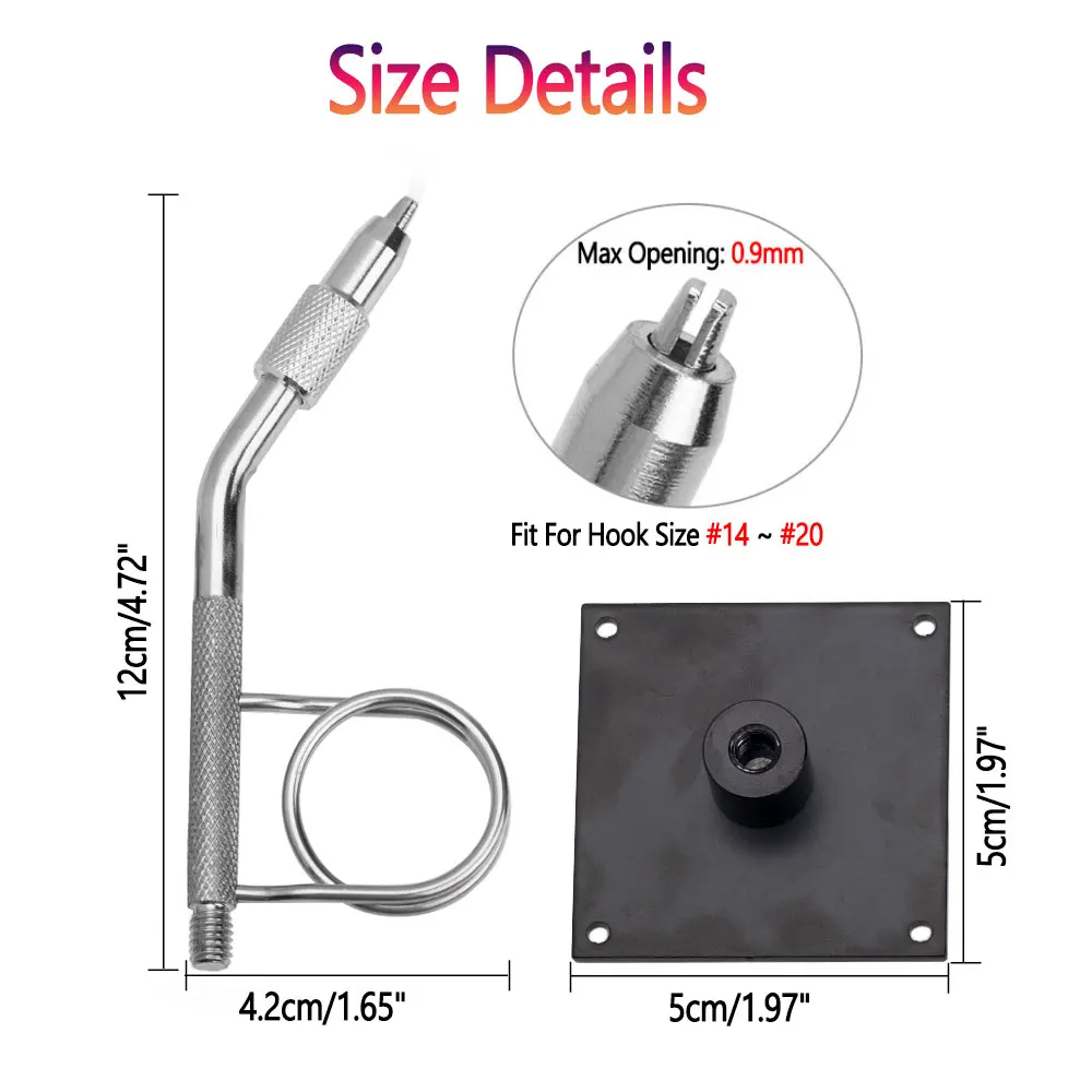 Bimoo 1 pieza Mini tornillo de banco para atar moscas de bolsillo con base Tamaño de mandíbulas de acero endurecido#14 ~ Talla#Herramienta para atar moscas con 20 ninfas de moscas secas y húmedas