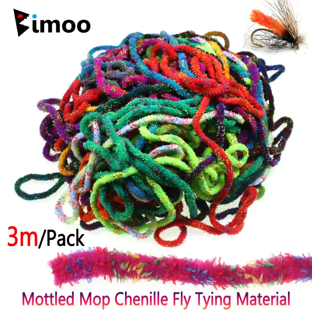 Bimoo Bimoo 3 m/paquete de 6 a 7 mm de ancho, fregona ceñida, Material para atar moscas de chenilla para bugger peludo, serpentina de ninfa húmeda, fregona con mosca y pez, señuelos Jig