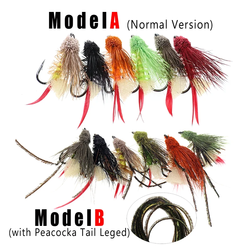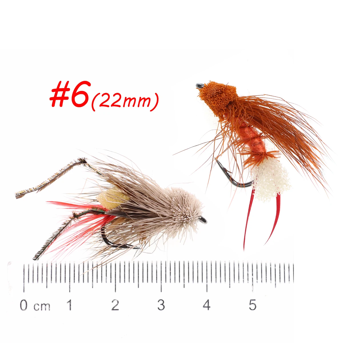 Bimoo 6 uds pesca con mosca ciervo pelo hierba tolva mosca Dave tolva mosca marrón tamaño#6 truchas lubinas perchas moscas secas terrestres