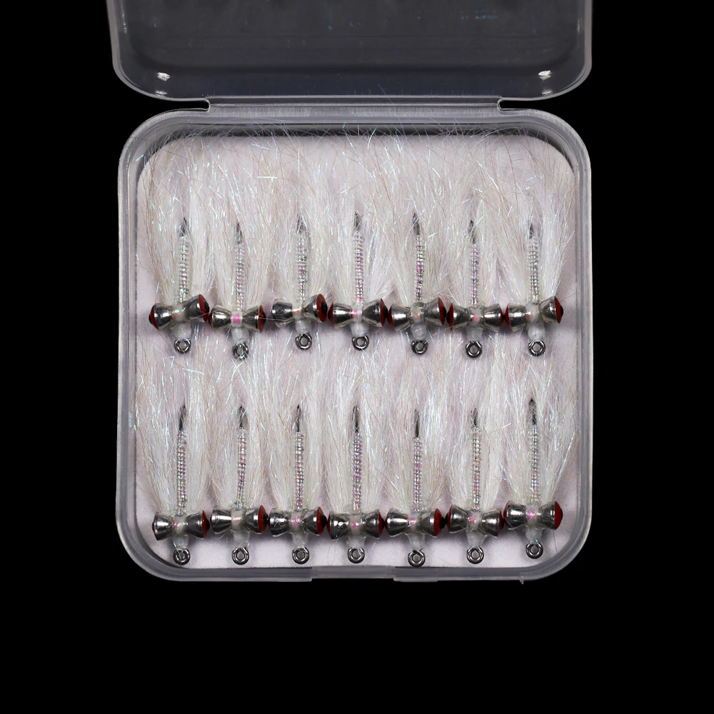 Bimoo 14PCS#6#8 Perlas Crazy Charlie Seafish mosca de pesca de agua salada fresca moscas para trucha mar lubina jaula ojo de mancuerna de latón