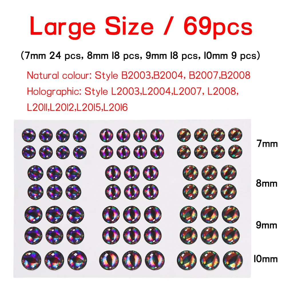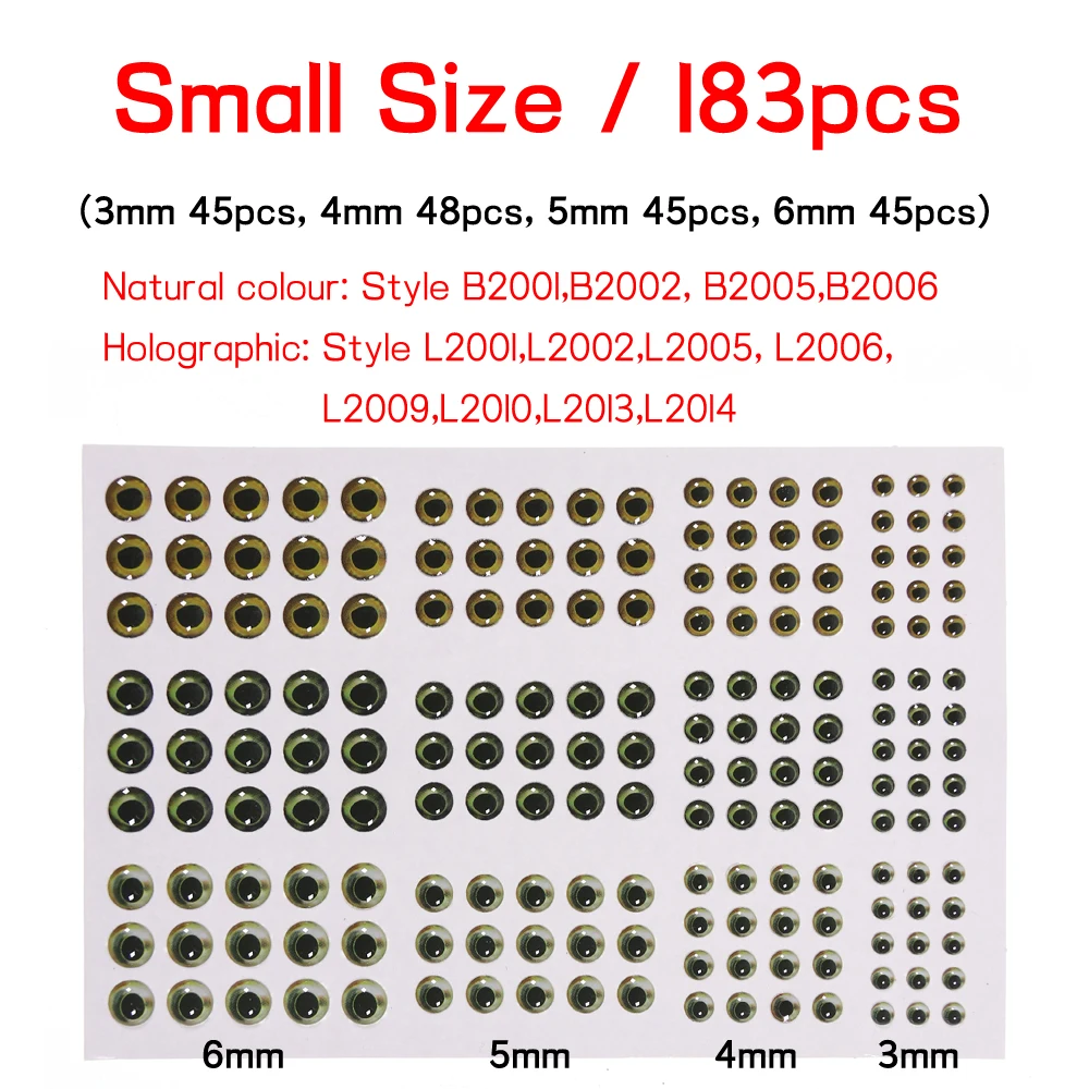 Bimoo 69/183 Uds. Surtido de Ojos de pez holográficos 3D para atar moscas serpentinas Baitfish señuelo de plástico de madera Popper DIY ojos 3mm ~ 10mm