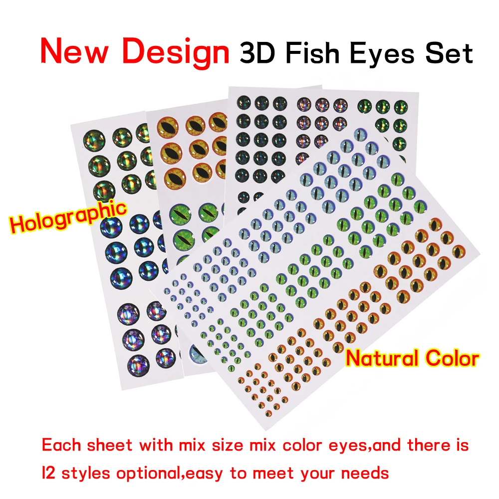 -Nuevo diseño 3D Realista Fish Eyes Set: Cada hoja con mezcla de tamaño mezcla ojos de color, y hay 12 estilos opcionales, fácil de satisfacer sus necesidades