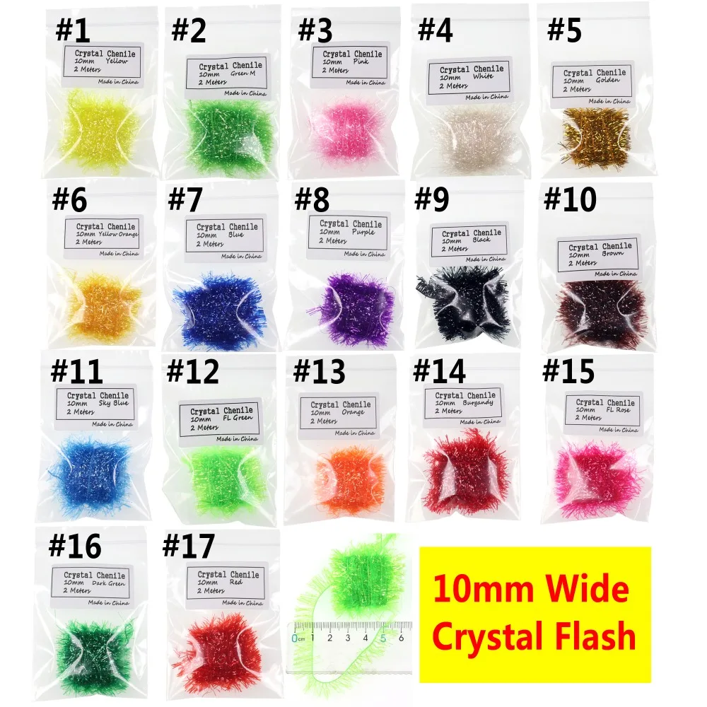 Bimoo 2 m/pack 10mm de ancho Crystal Flash Tinsel Hackle Flash para atado de moscas Streamer Egg Fly Salmon Fly Trucha Salmón Señuelos
