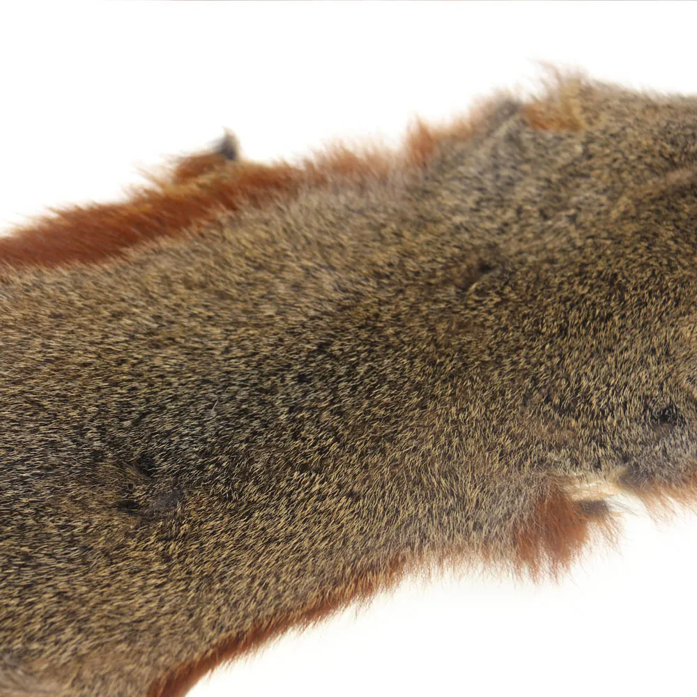 Toda la piel de ardilla de pino es suave. Usamos este pelo corto y denso moteado para crear buggy, más señor y moscas secas.La piel se puede cortar en tiras o cortar fibras de piel como materiales de doblaje de primera calidad.